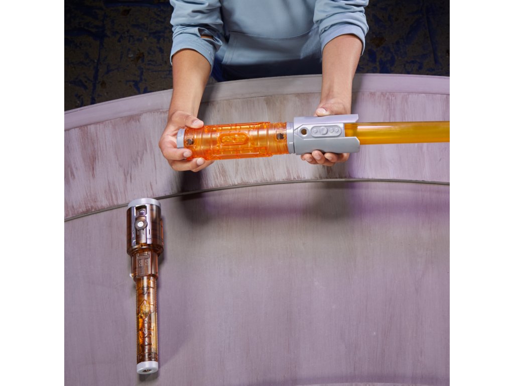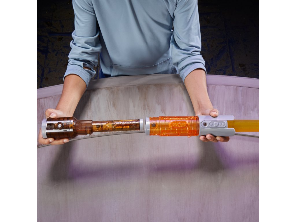 Představte si vzrušení a dobrodružství v předaleké galaxii se světelným mečem Star Wars Lighsaber Forge. Světelný meč s výsuvnou svítící čepelí, který je součástí výzbroje každého opravdového bojovníka. V balení jsou 4 díly inspirované postavou, které lze kombinovat s ostatními meči z řady Lighsaber Forge. Kromě svítící čepele má tento světelný meč pro děti také průhledné svítící jádro inspirované kyber krystalem, který se nachází v srdci každého světelného meče. Meč svítí a vydává zvuky. K vysunutí čepele stačí udělat rázný pohyb. Pokud vaše děti milují Star Wars, pak by jim neměl světelný meč chybět. Děti se díky své fantazii při hře přenesou do příběhů plných dobrodružství, napětí a nesmírné odvahy. Hračka k provozu vyžaduje 2x AAA baterie, které nejsou součástí. Obsahuje malé části nevhodné pro děti do 3 let. Rozměry balení: 54 x 8,3 x 6,4 cm. Věk 4+Dodatočné parametre