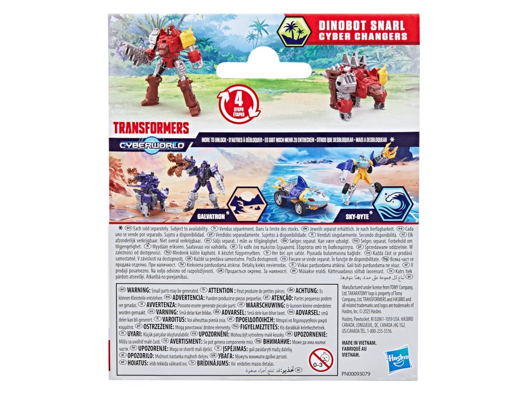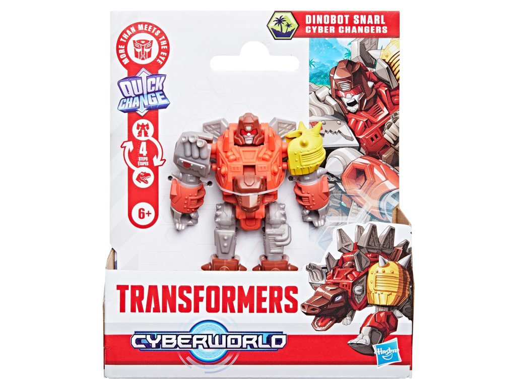 Transformers Cyberworld - Cyber Changers přináší roboty v přestrojení do zcela nové úrovně boje! Staří známí – oblíbené postavy, Autoboti a Decepticoni, kteří možná vypadají trochu povědomě, se vracejí do akce. Akční figurka Dinobot Snarl se snadno promění z robota na alternativní mód Dinosaura ve 4 krocích. Přeměna ve 4 krocích je dostatečně jednoduchá, aby ji děti zvládly samy. V režimu robota je figurka vysoká přibližně 10 cm a je polohovatelná. Vyrobeno z kvalitního plastu. Rozměry balení: 15,08 x 12,7 x 4,9 cm. Věk: 6+Dodatočné parametre