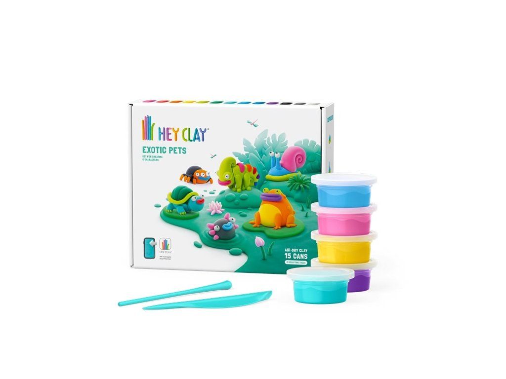 Hey Clay Exotické zvieratá Vymodelujte si originálne postavičky exotických zvieratiek Modelovacia hmota Hey Clay je ideálna pre všetky deti, ktoré milujú kreatívne tvorenie. Vďaka jemnej a voňavej modelovacej hmote si môžu vytvoriť originálne postavičky exotických zvieratiek a iné figúrky, podľa vlastnej fantázie. Po vymodelovaní stačí nechať postavičky zatvrdnúť na vzduchu približne 24 hodín, čím sa premenia na pevné figúrky a sú pripravené na ďalšie dobrodružstvá a hry.Objavte inšpirácie v aplikácii a vytvorte si postavičky presne podľa návodu Sada obsahuje 15 nádobiek farebnej plastelíny a 2 plastové pomôcky pre jednoduchšie modelovanie. Navyše, prístupový kód do aplikácie umožňuje detičkám inšpirovať sa novými nápadmi a vytvoriť 6 rôzne postavičky presne podľa návodu. Ak deti nie sú so svojím výtvorom spokojné, Hey Clay môžu jednoducho uložiť späť do téglika a pokračovať v modelovaní neskôr. Deti si pri hre trénujú svoje zručnosti, jemnú motoriku a rozvíjajú fantáziu.Dodatočné parametre