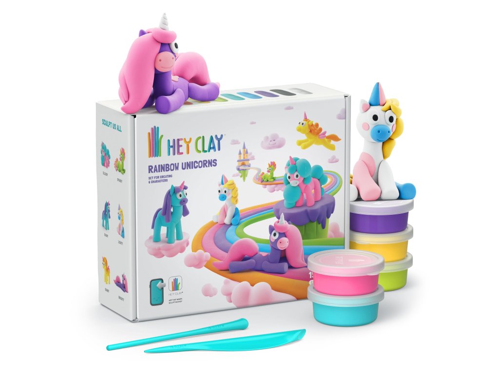Hey Clay Jednorožce Vymodelujte si originálne postavičky jednorožcov Modelovacia hmota Hey Clay je ideálna pre všetky deti, ktoré milujú kreatívne tvorenie. Vďaka jemnej a voňavej modelovacej hmote si môžu vytvoriť originálne postavičky jednorožcov a iné rôzne figúrky, podľa vlastnej fantázie. Po vymodelovaní stačí nechať postavičky zatvrdnúť na vzduchu približne 24 hodín, čím sa premenia na pevné figúrky a sú pripravené na ďalšie dobrodružstvá a hry.Objavte inšpirácie v aplikácii a vytvorte si postavičky presne podľa návodu Sada obsahuje 15 nádobiek farebnej plastelíny a 2 plastové pomôcky pre jednoduchšie modelovanie. Navyše, prístupový kód do aplikácie umožňuje detičkám inšpirovať sa novými nápadmi a vytvoriť 6 rôzne postavičky presne podľa návodu. Ak deti nie sú so svojím výtvorom spokojné, Hey Clay môžu jednoducho uložiť späť do téglika a pokračovať v modelovaní neskôr. Deti si pri hre trénujú svoje zručnosti, jemnú motoriku a rozvíjajú fantáziu.Dodatočné parametre