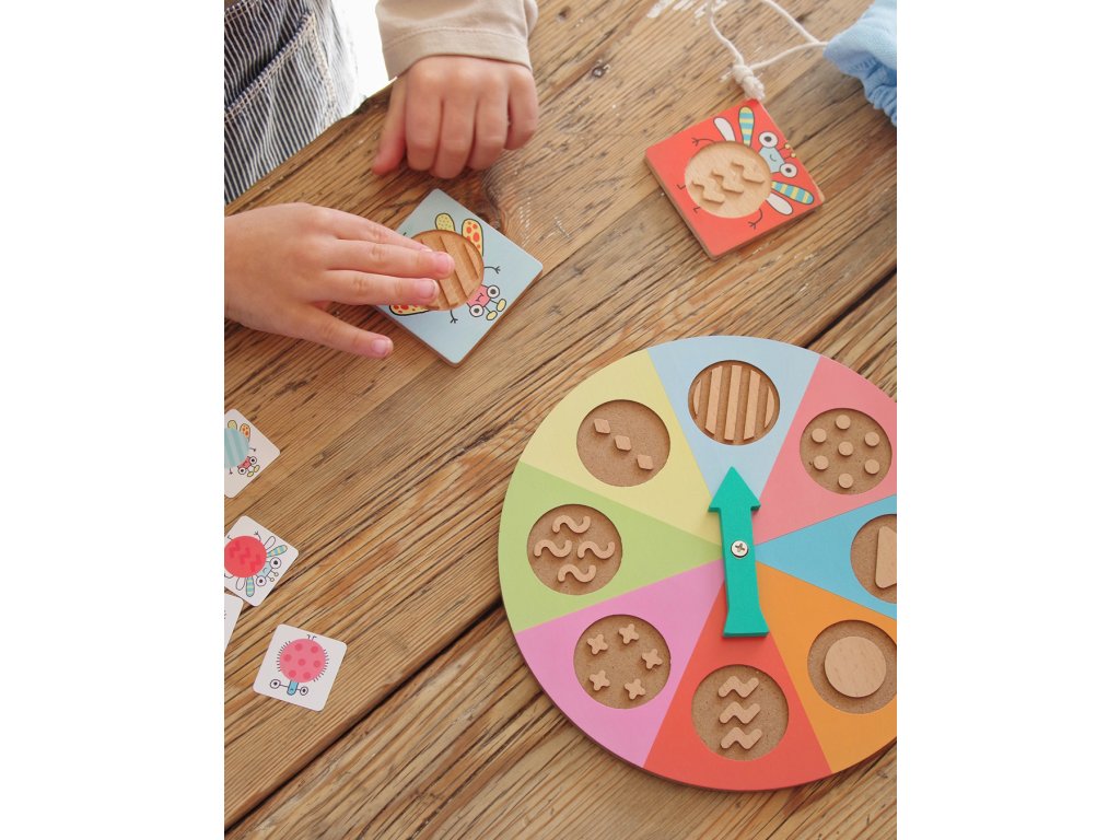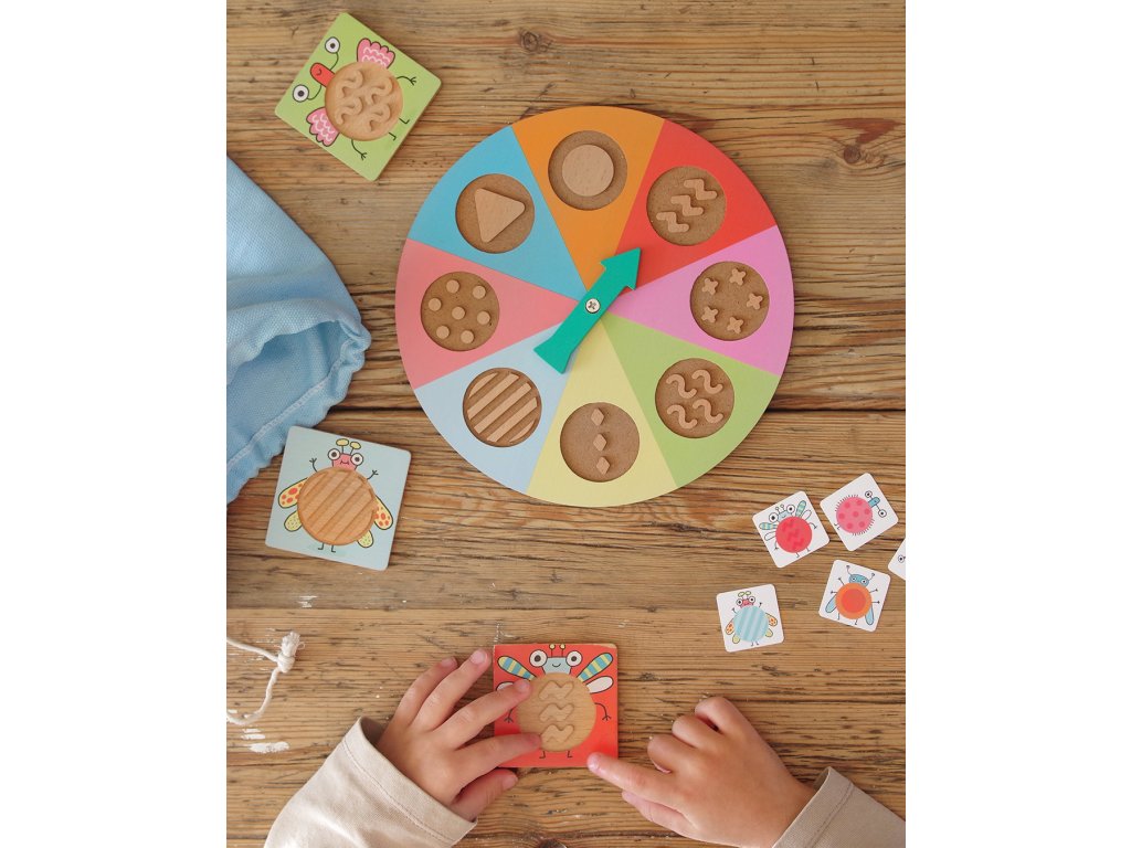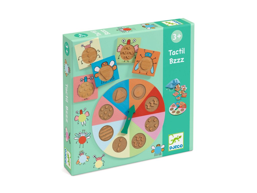 Hmatová hra BzzzZmyslová hra pre deti – spoznávanie hmyzích tvarov dotykomHmatové loto Bzzz od značky Djeco je originálna zmyslová hra, ktorá rozvíja hmat, sústredenie a schopnosť rozpoznávať tvary bez použitia zraku. Deti sa prostredníctvom hry zoznamujú s rôznymi druhmi hmyzu a prírodnými motívmi – tentoraz však nie očami, ale dotykom. Hra je ideálna pre deti, ktoré rady skúmajú, objavujú a učia sa novým spôsobom. Skvele sa hodí na domácu hru, do škôlky aj na edukačné aktivity.Herný postupDieťa najprv roztočí ruletku, ktorá určí vzor. Následne siahne do látkového vrecúška a pomocou hmatu sa pokúsi nájsť doštičku so zodpovedajúcim reliéfom – bez pozerania. Ak je výber správny, dieťa získa kartičku s ilustráciou hmyzu, ktorá má rovnaký vzor. Hra pokračuje ďalším kolom a víťazom sa stáva ten, kto ako prvý nazbiera štyri kartičky.Čo hra rozvíjahmatové a zmyslové vnímaniesústredenie a pozornosťrozlišovanie tvarovjemnú motorikuslovnú zásobuPrečo si vybrať Hmatové loto Bzzz od Djecoučenie prostredníctvom dotyku a zmyslovoriginálny herný princípkvalitné spracovanie a krásne ilustrácievhodné pre individuálnu aj skupinovú hruideálne pre deti od 3 rokovpre 2–4 hráčovtrvanie: 15 minútObsah baleniahracia doska s ruletkouhmatové dieliky s rôznymi tvarminepriehľadné vrecúškoilustrované kartičkynávod na hruDodatočné parametre