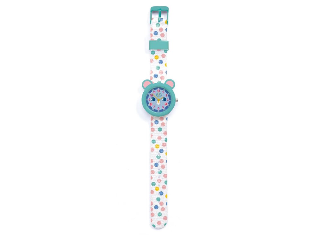 Sú skvelé ako prvé hodinky pre deti. Náramkové ručičkové hodinky s hravým elegantným dizajnom, motívom myšky a prehľadným ciferníkom sú krásny módny doplnok aj praktická pomôcka na učenie sa času. Deti sa vďaka nim naučia určovať čas. Kto pozná čas, ten je už „veľký“. Na ciferníku sú vyznačené hodiny a päťminútové úseky. Nečujný japonský mechanizmus Miyota 2035 poháňa gombíková batéria SR626SW Sony, ktorá je súčasťou balenia. Remienok je z polyesteru, pracka z pevného plastu. Hodinky sú nárazuvzdorné a vlhkotesné (3 bar), t.j. odolajú náhodným fŕkancom vody (napr. dažďa, pri umývaní rúk).Záruka: 2 rokyRozmery: 3 x 20 (dĺžka remienka s prackou) x 1,4 cmDodatočné parametre