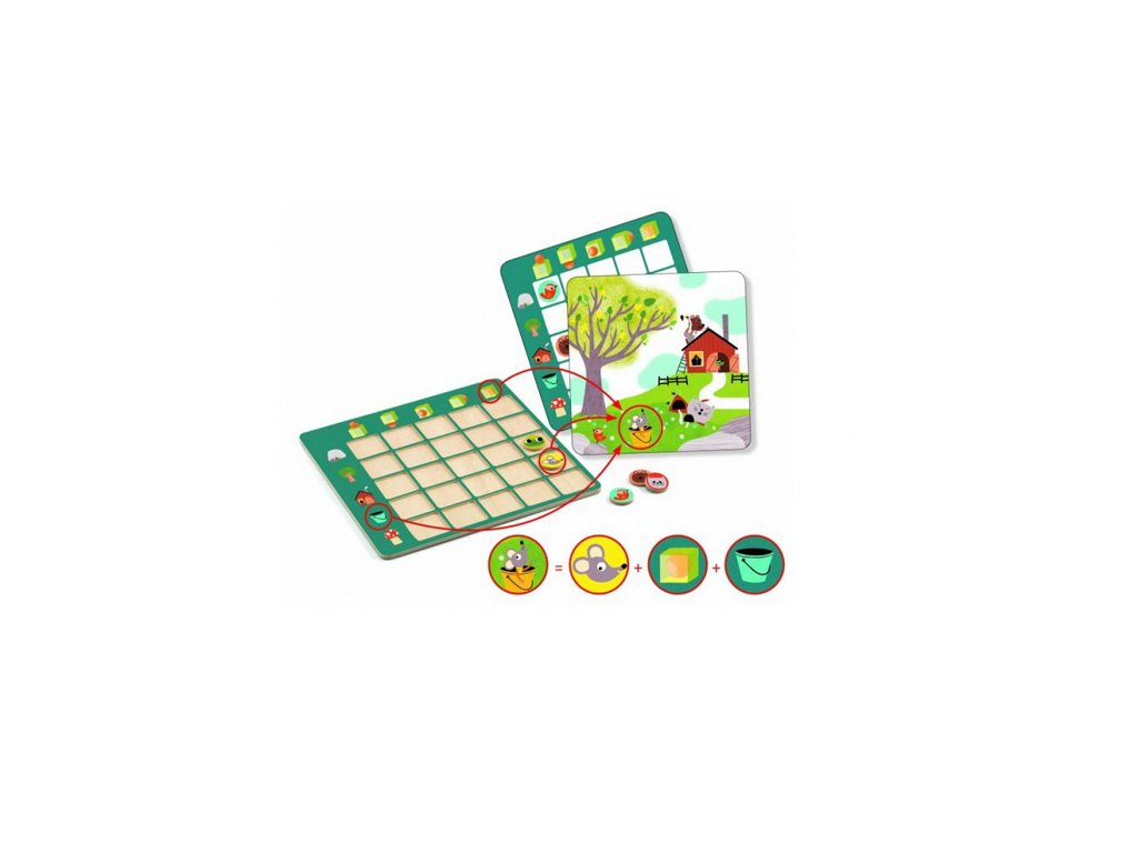 Hra Eduludo Topologix Kde je žabka? V dome! Kde je myška? Vo vedre... Hráči určujú polohu piatich zvieratok vzhľadom na predmety na obrázku.Deti sa učia orientovať sa v priestoreEdoludo Topologix od Djeco je zábavná a jednoduchá hra, ktorá učí deti priestorové vzťahy. Je určena pre deti od 4 roko. Sada obsahuje hraciu dosku 20 x 20 cm, 5 drevených žetónov a 20 vzorových kariet.Tu nájdete pravidlá hryDodatočné parametre