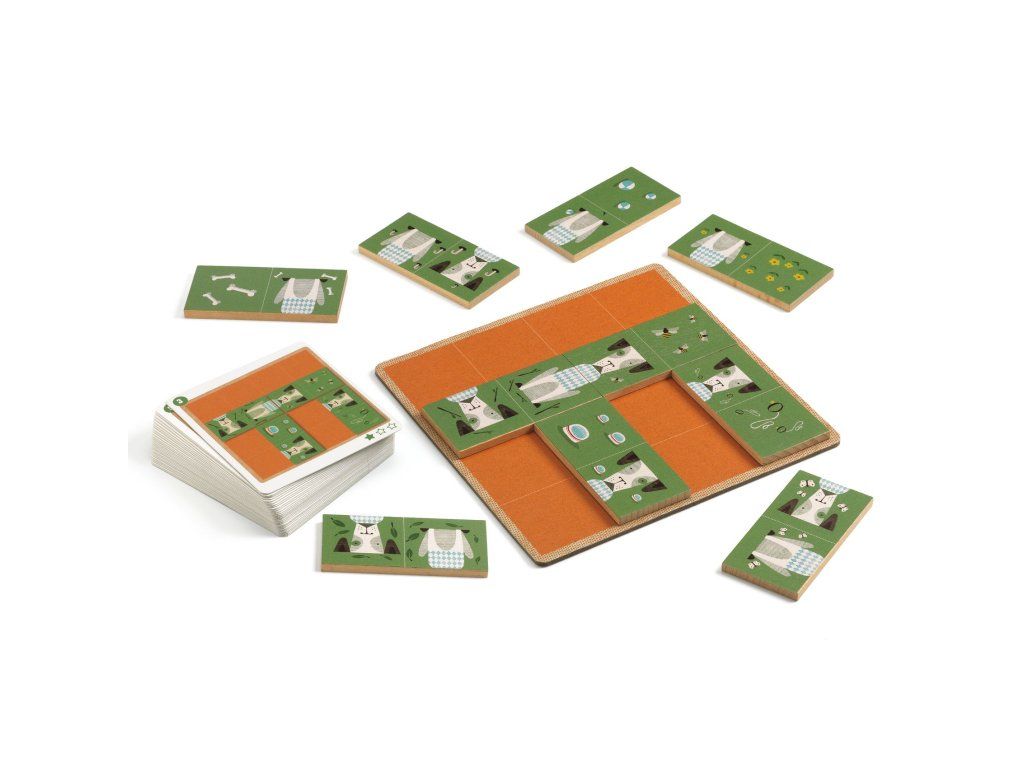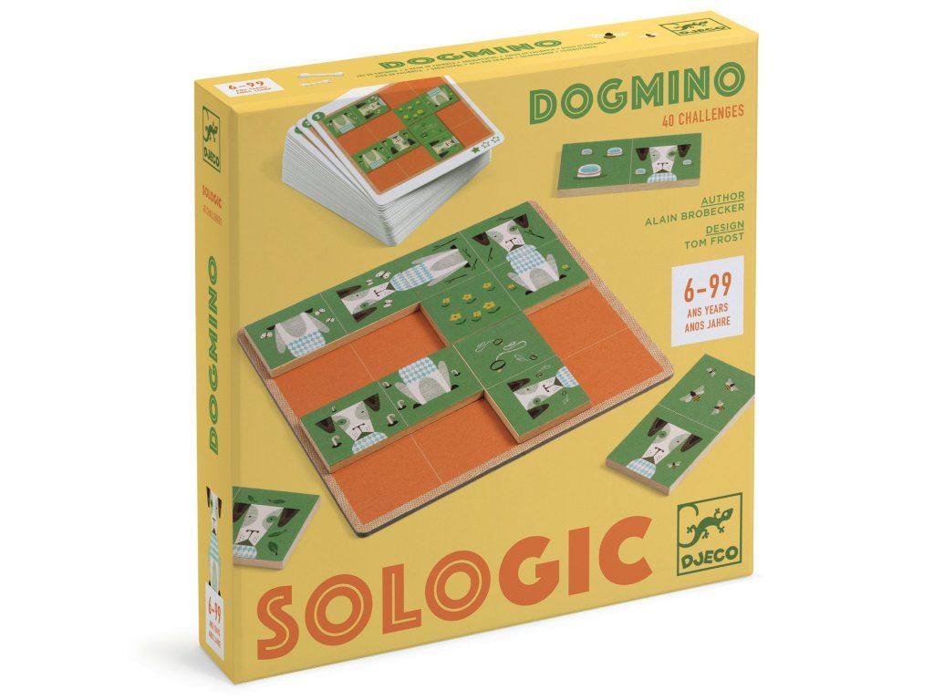 Hra SOLOGIC Dogmino Logický hlavolam pre 1 hráča: poskladajte psíkov ako domino do dokonalého štvorcaHra SOLOGIC Dogmino je originálny produkt značky Djeco z kolekcie logických hier pre jedného hráča. Funguje podobne ako domino: podľa zadania položíte na hraciu dosku niektoré dieliky a zvyšné doplníte tak, aby vznikol presný štvorec bez medzier a bez prekrývania.Overený obsah balenia 1 hracia doska 10 drevených dielikov (domino so psíkmi) 40 kariet zadaní návod s riešeniami (každé zadanie má jedno správne riešenie)Prečo deti baví 3 úrovne obtiažnosti – postupné zlepšovanie bez frustrácie krátke úlohy, ktoré sa dajú riešiť aj na cestách milá téma psíkov a kvalitné drevené spracovanieČo dieťa rozvíja logické myslenie a dedukciu priestorovú predstavivosť sústredenie a trpezlivosťVeková kategória Veková kategória: vhodné pre deti od 6 rokov (6+) Počet hráčov: 1 Tu nájdete návod