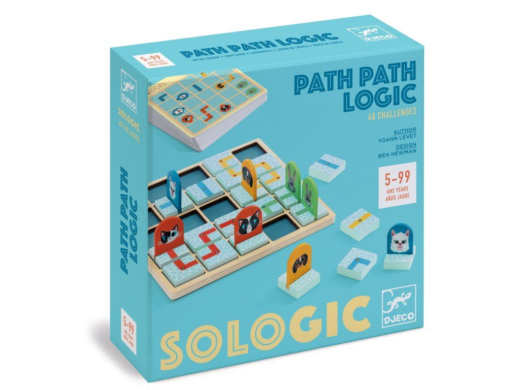 Hra SOLOGIC Path Path Logic Logický hlavolam pre jedného hráča: poskladajte cestičky a spojte zvieratká rovnakého druhuHra SOLOGIC Path Path Logic je originálny produkt značky Djeco, rýchly na pochopenie a pritom prekvapivo návykový. Úlohou dieťaťa je podľa zadania rozmiestniť zvieratká na hraciu dosku a potom pomocou dielikov ciest vytvoriť jediné správne prepojenie – vždy treba spojiť zvieratká rovnakého druhu.Čo je v balení 1 hracia doska (mriežka) 20 obojstranných kariet zadaní (spolu 40 výziev) 8 drevených dielikov zvieratiek 17 dielikov ciest4 úrovne obtiažnosti a vždy len jedno riešenieHra ponúka 4 úrovne obtiažnosti a každá výzva má iba jedno správne riešenie. Dieťa si tak trénuje logiku krok po kroku – od jednoduchších úloh až po tie, pri ktorých je potrebné plánovať dopredu.Čo dieťa rozvíja logické myslenie a dedukciu priestorovú predstavivosť sústredenie a trpezlivosť riešenie problémov bez frustrácie vďaka jasným pravidlámVeková kategória a typ hry Veková kategória: vhodné pre deti od 5 rokov (5+) Počet hráčov: 1 Materiál: drevo a papier s certifikáciou FSC Tu nájdete návod