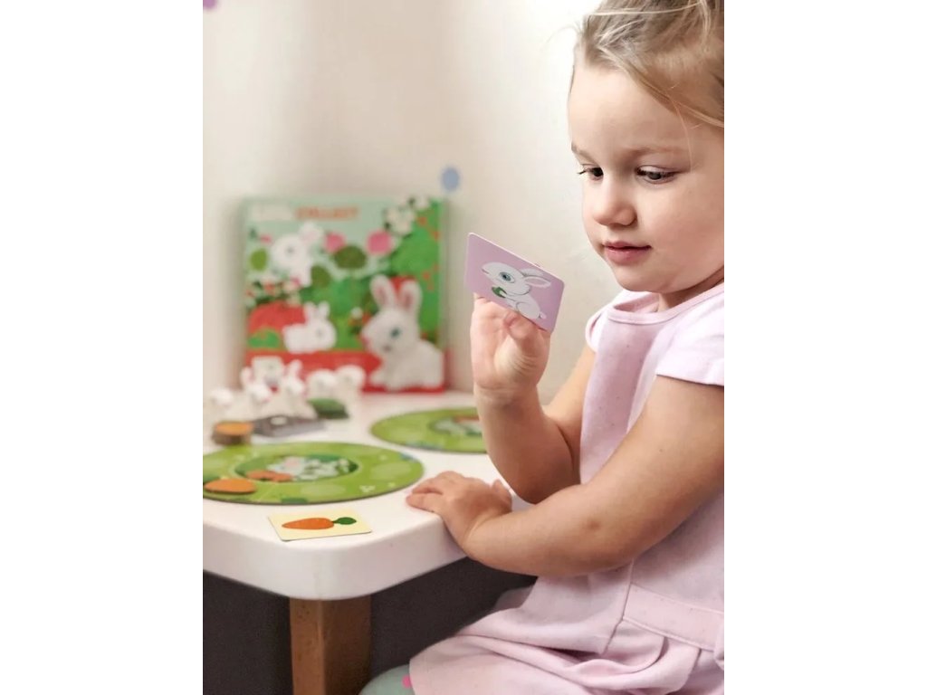 Hra ZajkoviaRoztomilá kooperatívna hra plná mrkvy, hrášku a dobrodružstva na lúkeVitajte na farebnej lúke, kde malí zajačikovia behajú sem a tam a snažia sa nazbierať čo najviac chutnej mrkvy a hrášku. Hra Zajkovia je navrhnutá pre najmenších hráčov od 2,5 do 5 rokov, aby ich hravou formou naučila spolupráci, trpezlivosti a prvým herným pravidlám. Deti sa stávajú súčasťou veselého príbehu: pomáhajú zajačikom zbierať úrodu, no zároveň si musia dávať pozor na líšku, ktorá sa potuluje po lúke a môže im plány poriadne skomplikovať. Jednoduché pravidlá, krátka herná doba a krásne ilustrácie robia z tejto hry ideálnu prvú spoločenskú aktivitu, pri ktorej sa deti učia rozhodovať, vnímať následky svojich krokov a spolupracovať s ostatnými hráčmi.Čo sa deti pri hre naučia? Spoluprácu a komunikáciu – hráči sa nerozhodujú proti sebe, ale spoločne. Trpezlivosť a striedanie sa na ťahu – základ herných zručností pre predškolákov. Jednoduché strategické myslenie – čo spraviť skôr? Kedy je líška nebezpečne blízko? Motoriku a koordináciu – manipulácia s figúrkami a žetónmi. Emocionálne zručnosti – zvládanie napätia, spoločná radosť z výhry aj spoločné prekonávanie prekážok. Prečo si deti (a rodičia) Zajkov zamilujú? Hra je rýchla, dynamická a trvá približne 10 minút – ideálne pre krátku detskú pozornosť. Prináša napätie aj radosť, ale v úplne bezpečnej a hravej forme. Má krásne komponenty, ktoré deti milujú – roztomilé zajačiky, ilustrácie lúky a lákavú mrkvu. Je to skvelý spôsob, ako tráviť čas spoločne bez súťaženia a stresu.Dodatočné parametre