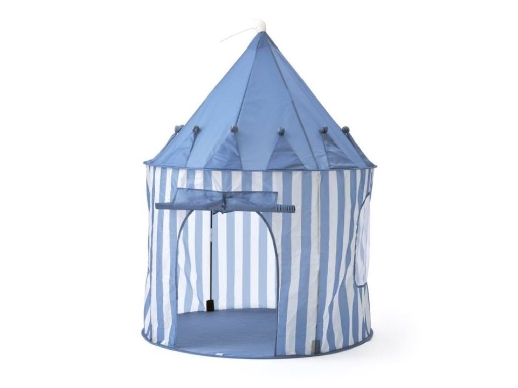 Hrací domček - stan pre deti Hrací stan (domček) v pruhovanom dizajne bude perfektnou schovávačkou pre vašich chlapcov aj dievčatká, ktorí si v stane môžu urobiť pohodlný peleštek pomocou mäkučkých vankúšikov. Máte doma akčné dieťatko, ktoré miluje cirkusové vystúpenia? Potom bude detský stan skvele slúžiť ako šapito na predstavenie plyšákov, zvieracích figúrok a bábik. Alebo si vaše deti rady prezerajú a čítajú knižky? Útulný domček na hranie ich rád privíta a vypočuje si množstvo krásnych príbehov z rozprávkových knižiek spoločne s nimi. Možno budete mať šťastie a deti vás tiež pozvú na návštevu. Stan má skladacie tyče, vďaka ktorým sa jednoducho zostavuje a zase rozkladá. Výrobok nie je nehorľavý, pretože chemické látky obsiahnuté v úprave nie sú schválené podľa právnych predpisov "REACH". Technické parametre: Priemer základne: 100 cm. Výška stanu: 130 cm. Hmotnosť: 858 g. Materiál: polyester (textília), polyester vystužený sklenými vláknami, oceľ (tyče). Farba: sivá alebo modrá (podľa zvoleného variantu). Certifikáty: CE. Odporúčaný vek: od 3 rokov. Údržba a čistenie: Očistite prach alebo čistite vlhkou handričkou. Len bodové čistenie. Upozornenie: Nevhodné pre deti mladšie ako 3 roky.Dodatočné parametre