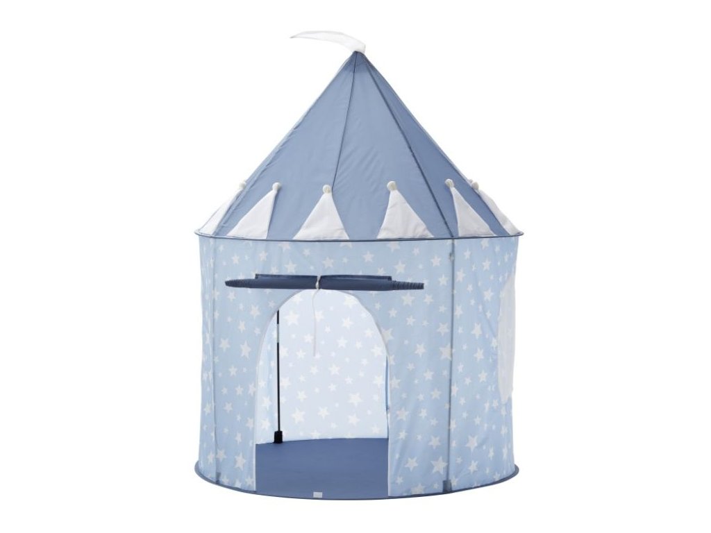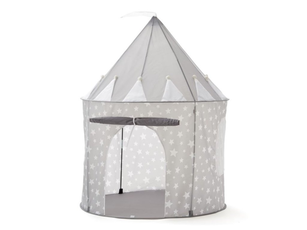 Hrací stan - domček pre deti STAR Hrací stan (domček) z polyesteru s detailmi podnecujúcimi fantáziu, ako sú hviezdy a dizajnové doplnky, je ideálny ako miesto na hranie alebo útulné posedenie. Stan má skladacie tyče, vďaka ktorým sa jednoducho zostavuje a zase rozkladá. Výrobok nie je nehorľavý, pretože chemické látky obsiahnuté v úprave nie sú schválené podľa právnych predpisov "REACH". Technické parametre: Priemer základne: 100 cm. Výška stanu: 130 cm. Hmotnosť: 858 g. Materiál: polyester (textília), polyester vystužený sklenými vláknami, oceľ (tyče). Farba: sivá, modrá alebo ružová. Certifikáty: CE. Odporúčaný vek: od 3 rokov. Údržba a čistenie: Očistite prach alebo čistite vlhkou handričkou. Len bodové čistenie. Upozornenie: Nevhodné pre deti mladšie 3 roky.Dodatočné parametre