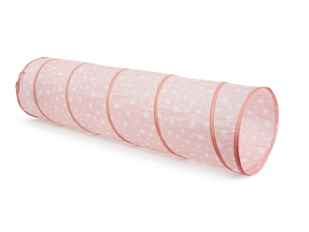 Hrací tunel s hviezdami Hrací tunel je také dobrodružstvo. Skryte sa do vnútra alebo prelezte cez a objavte, čo vás čaká na druhej strane. Technické parametre: Priemer: 47 cm. Dĺžka: 180 cm. Hmotnosť: 600 g. Materiál: 100% polyester, oceľ, polypropylén. Farba: sivá, modrá alebo ružová (podľa zvoleného variantu). Odporúčaný vek: od 3 rokov. Údržba a čistenie: Očistite prach alebo čistite vlhkou handričkou. Len bodové čistenie. Upozornenie: Nevhodné pre deti do 3 rokov.Dodatočné parametre