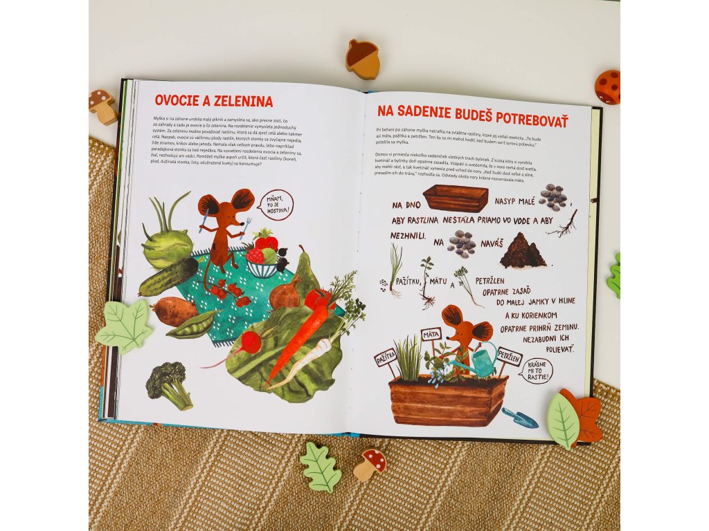 Hravouka - Encyklopédia zázrakov prírody Pridaj sa k myške a preskúmaj fascinujúci svet prírody. Kravička robí mú, psík hav-hav. Hm. Vravíš, že ťa to nebaví? Že je to pre malé deti? Potom si asi radšej prečítaš o tom, ako v lese tlejú opadané listy, ako vyzerá noha žaby a kto si najradšej pochutí na myške.Hravé a náučné rozprávanie o myške, ktorú záujem o prírodu priviedol k napísaniu vlastnej knihy. Práve myška žijúca v podzemnej nore je rozprávačkou, ktorá zároveň skúma les, sad aj rybník. Obkresľuje tvary kôstok, ochutnáva mrkvu, uvažuje, podľa čoho možno rozdeliť plody na ovocie a zeleninu, skúma vek stromov podľa letokruhov, loví chrobáky a lisuje rastliny. Doma si všetko starostlivo zapíše do zošita a poradí ti, ako si môžeš urobiť herbár či vytvoriť záhradné jazierko.Dodatočné parametre