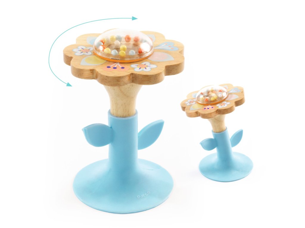Hrkálka Kvietok BabySwip Hrkálka v tvare kvetinky Mäkká stonka, kvetina z prírodného dreva a priesvitný stred plný farebných malých korálikov. Vďaka prísavke si vaše dieťa môže užívať klepanie na kvetinu bez toho, aby sa prevrhla.Dodatočné parametre