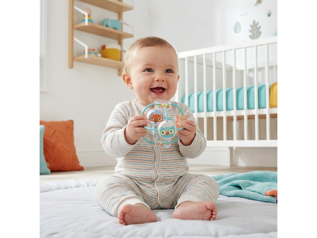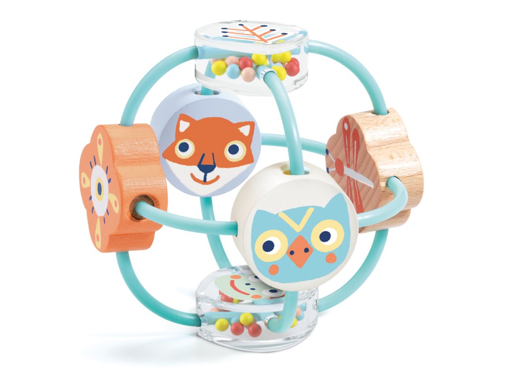 Hrkálka Lesné zvieratá Hrkálka v tvare lopty S maľovanými drevenými a priehľadnými plastovými korálkami na ľahkej kovovej konštrukcii. Pri trasení hrkálkou guľôčky v korálkach hrkajú. Dieťa dokáže hrkálku dobre uchopiť Baby white je kolekcia rozvíjajúcich hračiek koncipovaných ako milé, harmonické a jedinečné produkty. Vyznačuje sa výrazným podielom prírodného dreva a jemných farieb. Kolekciu navrhuje Christophe Gilet, jeden z top dizajnérov drevených hračiek. Pre Djeco je dlhoročná spolupráca s ním veľkou cťou!Odporúčaný vek: 3+ mesiacovRozmery: 10 x 10 x 10 cmDodatočné parametre