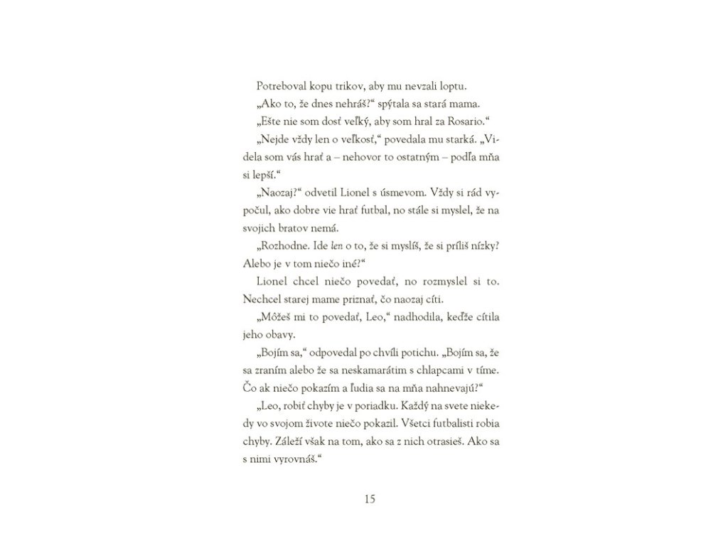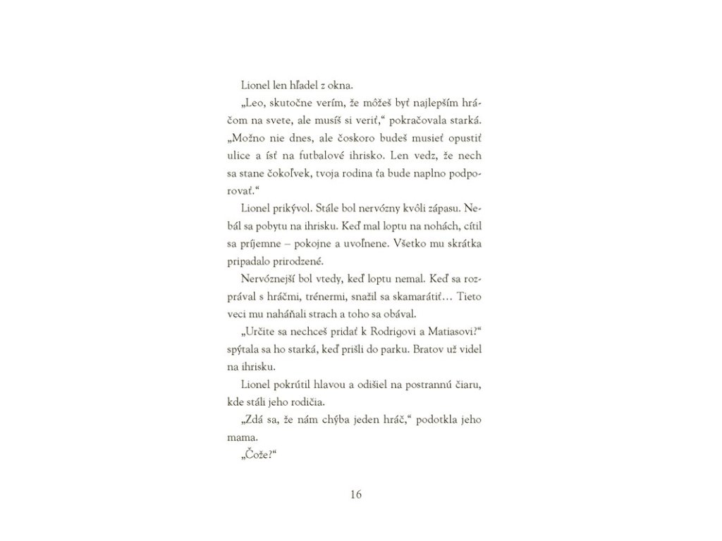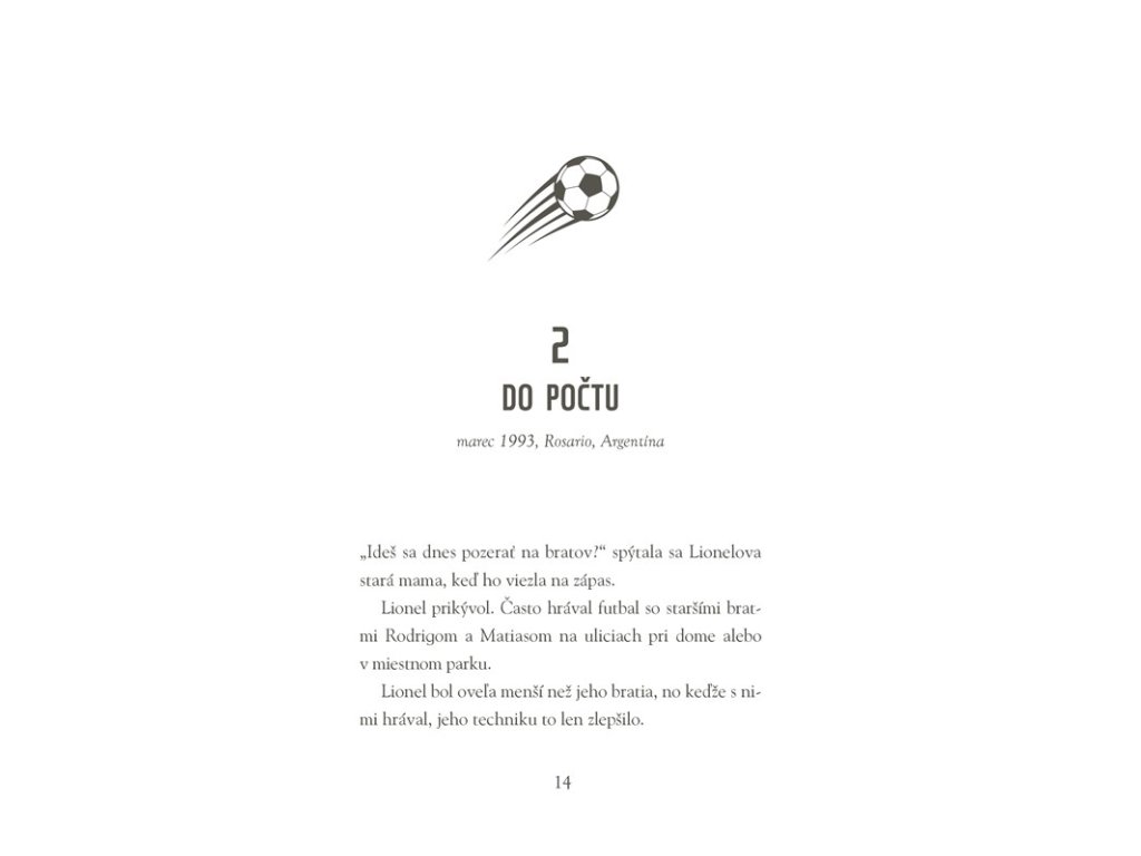 Hviezdy futbalu: Messi Cesta od malého chlapca k najlepšiemu futbalistovi Keď mal Lionel Messi len päť rokov, už vtedy ukazoval obdivuhodné futbalové schopnosti – bol rýchly, sústredený a sníval o žiarivej budúcnosti. No jeho cesta k sláve nebola jednoduchá. Čelil vážnym zraneniam, tvrdým kritikám médií a vlastnému perfekcionizmu. Napriek tomu všetkému sa stal jedným z najlepších futbalistov všetkých čias. „Hviezdy futbalu: Messi“ vám prináša jeho príbeh, ktorý sleduje jeho cestu od najnižšieho chlapca v bratovom futbalovom tíme až po oceňovaného útočníka, ktorého každý považuje za legendu. Tento príbeh o vytrvalosti, tvrdej práci a sne o víťazstve inšpiruje nielen športových fanúšikov, ale aj všetkých, ktorí snívajú o úspechu.Dodatočné parametre