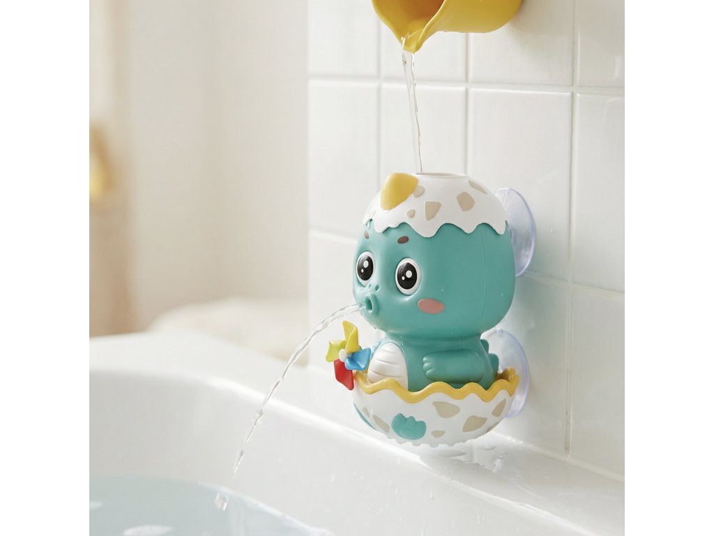 Interaktívna hračka do vane DinoRoztomilý kamarát do kúpeľaInteraktívna hračka do vane Dino je veselý dinosaurus ukrytý v škrupinke vajíčka, ktorý spraví z každého kúpeľa malú vodnú šou a motivuje deti, aby sa do vane tešili. Hračka je navrhnutá tak, aby zaujala už na prvý pohľad – má veľké očká, jemné farby a milý výraz, vďaka čomu si ju deti rýchlo obľúbia. Po naliatí vody do lievika nad hlavičkou sa začína zábava: voda tečie cez vnútro hračky, roztáča farebné koliesko a vytvára jemný vodopád, ktorý vyteká zo spodnej časti vajíčka. Deti môžu vodu nalievať opakovane, sledovať, ako sa mení prúd, a skúšať, čo sa stane, keď lejú rýchlejšie alebo pomalšie. Takýmto spôsobom si prirodzene rozvíjajú jemnú motoriku, koordináciu oko–ruka a učia sa základným princípom príčiny a následku. Dino je vyrobený z kvalitného, hladkého plastu bez ostrých hrán, takže je bezpečný aj pre menšie deti. Jednotlivé časti sú pevne spojené, aby hračka dobre znášala častý kontakt s vodou a každodenné používanie vo vani. Materiál sa ľahko čistí – po kúpaní stačí hračku opláchnuť čistou vodou, nechať odkvapkať a uložiť na suché miesto, čím sa znižuje riziko tvorby nečistôt.Dodatočné parametre