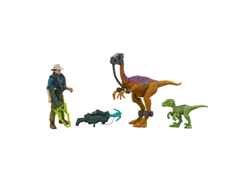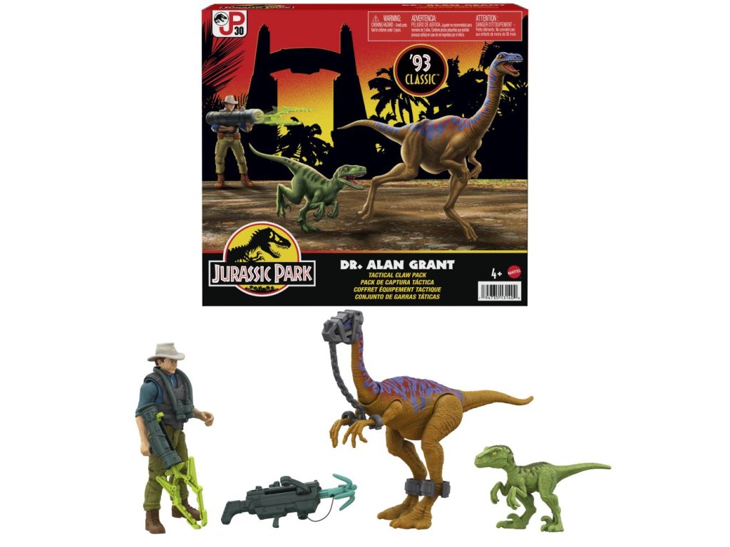 Tento set Jurský svet Alan Grant s dinosaurami a doplnkami je nostalgickým pripomenutím scény z pôvodného filmu Jurský park. Figúrka Galimima má vzhľad inšpirovaný 90. rokmi a je dodávaná s vybavením na odchyt. Dr. Alan Grant má svoj charakteristický safari klobúk a je dodávaný s odnímateľným brnením a ďalekohľadom. Set dopĺňa mláďa raptora a ďalšie doplnky súvisiace s príbehom.Dodatočné parametre