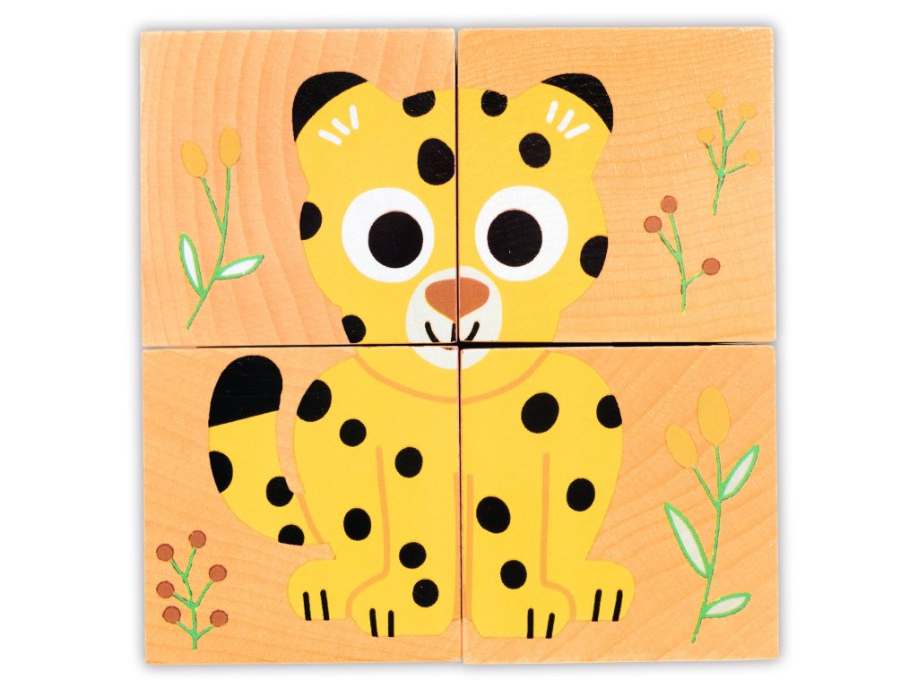 Kamaráti z divočiny: Drevené puzzle kockyEdukačné drevené puzzle pre najmenších s motívom divokých zvieratKamaráti z divočiny – drevené puzzle kocky sú ideálnou hračkou pre malé deti, ktoré sa učia spoznávať obrázky, tvary a súvislosti. Pomocou drevených kociek deti skladajú obrázky zvieratiek z divočiny a objavujú, ako jednotlivé časti do seba zapadajú. Jednoduchý princíp hry podporuje samostatnú hru a prirodzené učenie hrou už od raného veku.Prečo si vybrať toto puzzle od Djecovhodné pre deti od 2 rokovdrevené kocky s ilustráciami divokých zvieratjednoduchý edukačný princíp vhodný pre malé detipodporuje učenie hrou bez zbytočnej frustráciemotívy zvieratiek, ktoré deti prirodzene zaujmúkvalitné a odolné drevené spracovanieObsah balenia4 drevené puzzle kocky s ilustráciami zvierat z divočinyDodatočné parametre