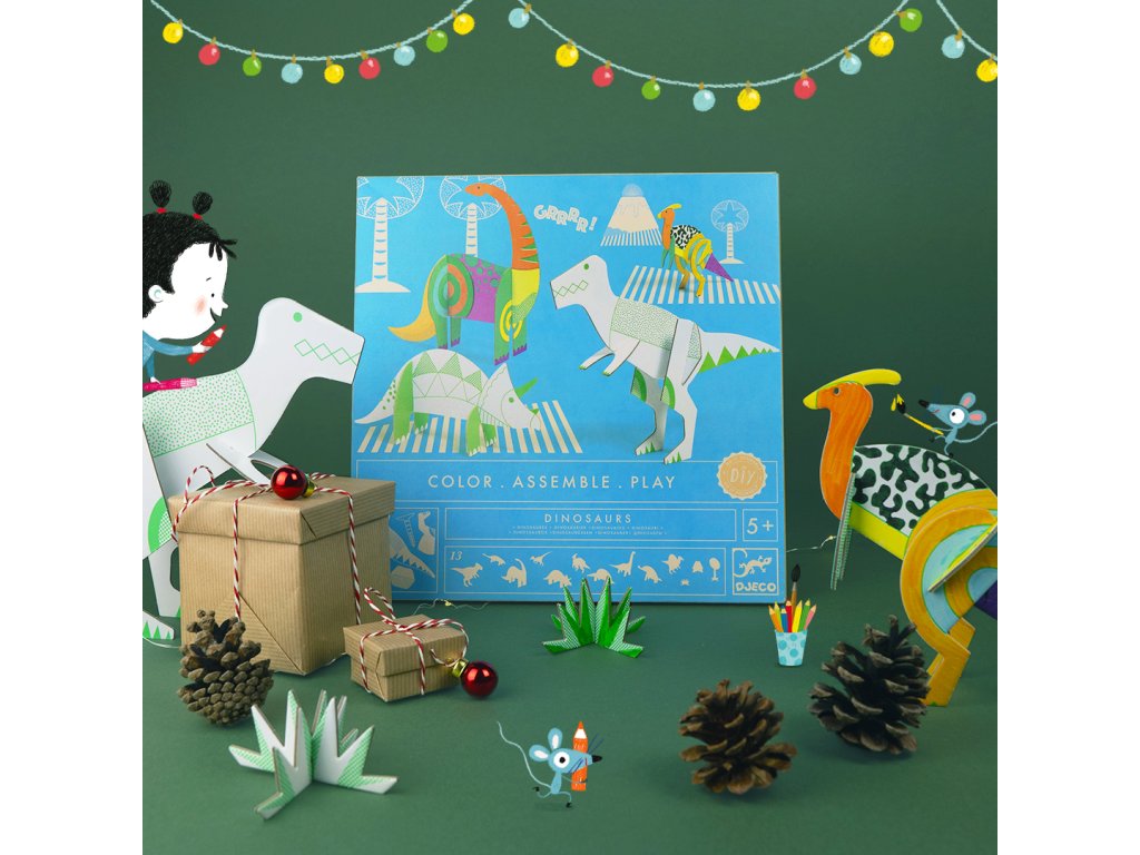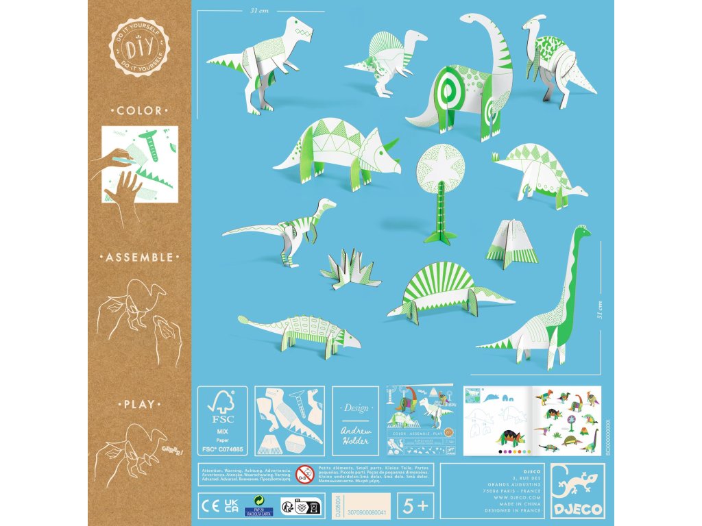 Kartónová 3D kreatívna sada Dinosaury Vyfarbi, poskladaj a hraj sa v 3D: dinosaury a scénické prvky na hranie bez lepidla a bez nožnícKartónová 3D kreatívna sada Dinosaury je tvorivá sada, v ktorej deti najprv vyfarbia pevné kartónové dieliky, potom ich vylomia a jednoducho poskladajú do 3D pomocou zárezov.Hotové prvky sa hneď menia na hračky – ideálne na fantazijnú hru, tvorenie aj rozprávanie príbehov.Rýchly prehľad odporúčaný vek: od 5 rokov rozvíja: jemnú motoriku, kreativitu, trpezlivosť, predstavivosť v balení: 6× kartónová platňa/arch, 13× predrezaný dielik, návodPrečo si to deti zamilujú 2v1 aktivita: najprv vyfarbovanie, potom skladanie a hra bezpečné tvorenie: skladanie bez lepidla a bez nožníc pevný kartón: dieliky držia tvar a zvládnu opakované hranie podporuje sústredenie a „dokončím to“ pocit z hotového výsledkuAko to funguje Vyfarbi dieliky podľa vlastnej fantázie alebo podľa tipov v návode. Vylom predrezané časti a priprav zárezy na skladanie. Poskladaj dieliky do 3D – zasúvaním do seba bez lepidla. Postav scénu a hraj sa s hotovými prvkami.Obsah balenia 6× kartónová platňa/arch 13× predrezaný dielik na vyfarbenie a poskladanie 1× návod s tipmi na vyfarbovanie a skladanieTechnické parametre materiál: pevný kartón a papier (FSC) montáž: bez lepidla a bez nožníc, predrezané dieliky rozmery balenia: 31 × 31 × 1,5 cmDodatočné parametre