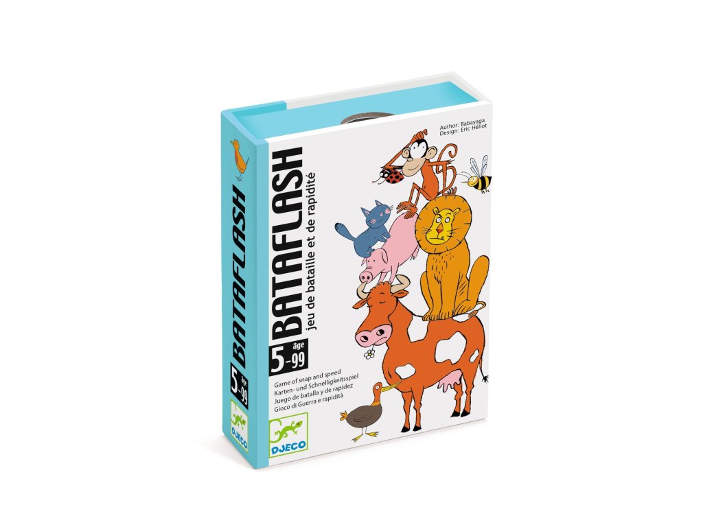 Kartová hra Bataflash Postreh a rýchla reakcia: otoč kartu, nájdi spoločné zvieratko alebo zakrič „Bataflash“ a získaj kartyBataflash je svižná kartová hra, ktorá trénuje pozornosť, rýchlosť a bystré oko.Všetci hráči otáčajú karty naraz a sledujú, či sa na otočených kartách nachádza spoločné zviera – alebo naopak, či tam nie je žiadne spoločné zviera.Hra je jednoduchá na pochopenie a je ideálna aj pre rodiny: je bez textu na kartách, takže rozhoduje najmä postreh.Cieľom je postupne získať všetky karty.Rýchly prehľad odporúčaný vek: od 5 rokov počet hráčov: 2 – 4 doba hry: cca 15 min rozvíja: postreh, rýchle rozhodovanie, sústredenie v balení: 32 kariet, pravidláPrečo si ju deti zamilujú je rýchla a dynamická – každé kolo je iné trénuje „oko“ – hľadanie spoločného prvku je návykové má jednoduché pravidlá – dá sa hrať takmer hneď kompaktné balenie – vhodné aj na cestyAko to funguje Rozdaj karty hráčom (pri 3 hráčoch odlož 2 karty bokom). Každý si položí balíček pred seba lícom nadol. Všetci naraz otočíte vrchnú kartu. Ak je na všetkých otočených kartách spoločné zviera, prvý hráč zakričí jeho názov. Ak nie je žiadne spoločné zviera, prvý hráč zakričí „Bataflash“. Správna odpoveď = hráč získa otočené karty a dá si ich pod svoj balíček. Nesprávna odpoveď = hráč dá po 1 karte každému súperovi.Obsah balenia 32× karta 1× pravidlá hryTechnické parametre typ hry: postrehová, rýchlostná kartová hra počet hráčov: 2 – 4 čas hrania: cca 15 min počet kariet: 32Dodatočné parametre