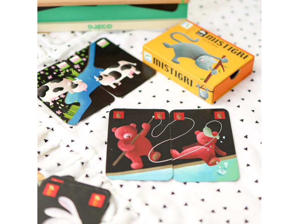 Kartová hra Čierny Peter MistigriNestarnúca klasika v krásnom modernom spracovaníMistigri prináša obľúbenú detskú hru Čierny Peter v čarovnom, hravom a vizuálne atraktívnom prevedení. Cieľom hry je jednoduchý – zbierať dvojice kariet a zároveň sa vyhnúť jednému jedinému protivníkovi: karte Mistigri (Čierny Peter). Kto zostane na konci hry s touto kartou v ruke, prehráva. Všetko ostatné je čistá zábava!Klasická hra, ktorá nikdy neomrzíMistigri je ideálna spoločenská hra pre najmenších hráčov. Pravidlá pochopia za pár sekúnd a hra pritom ponúka množstvo napätia, smiechu a drobných prekvapení v každom kole.Hra, pri ktorej deti premýšľajú bez toho, aby si to uvedomiliČierny Peter Mistigri výborne rozvíja: pamäť a koncentráciu pozorovacie schopnosti a postreh logické uvažovanie pri vytváraní dvojíc komunikáciu a sociálne zručnosti trpezlivosť a zvládanie emócií Deti si nezáväznou formou precvičujú mozog, zatiaľ čo sa naplno zabávajú.Tu nájdete pravidlá hryDodatočné parametre