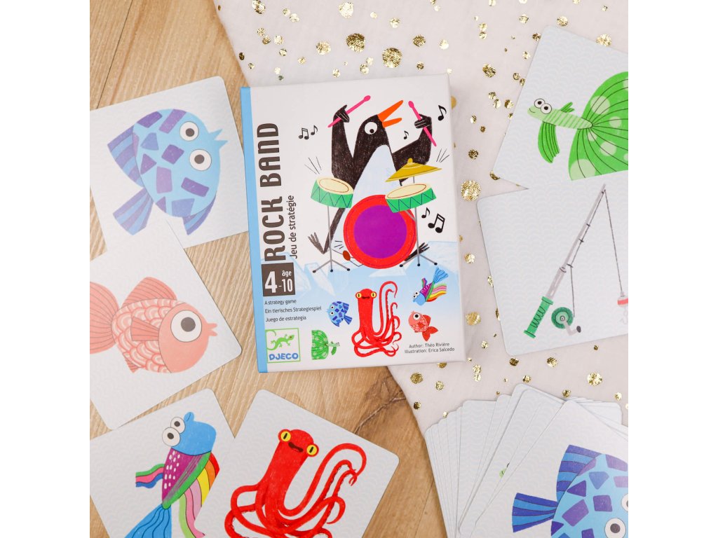 Kartová hra Rocková kapelaStaň sa hviezdou a zostav svoju kapelu! Vstúp do sveta hudby a stratégie s kartovou hrou Rocková kapela! Úlohou každého hráča je zostaviť vlastnú 4-člennú kapelu – bubeníka, klávesistu, basového gitaristu a speváka. Hráči si môžu postupne brať karty z centra stola, ak splnia podmienky – obľúbená potrava hudobníka, žolík alebo možnosť ukradnúť kartu od súperov. Ale pozor – v hre je iba jeden žolík a jedna šanca ukradnúť kartu! Strategická zábava pre malých hudobníkov Rocková kapela kombinuje taktiku, pozorovanie a rýchle rozhodovanie. Víťazom sa stáva hráč, ktorý ako prvý získa všetkých štyroch členov svojej kapely. Hra podporuje rozvoj logického myslenia a učí deti plánovať svoje ťahy. Detaily hry:Obsah: 40 kariet + pravidlá Počet hráčov: 2–4 Vek: 4–10 rokov (predškoláci aj mladší školáci) Dĺžka hry: cca 15 minút Rozmery kariet: 7 × 10,5 cm Rocková kapela je kompaktná, zábavná a ideálna hra pre doma aj na cesty – vezmite si ju na víkend, návštevu či dovolenku a zažite hodiny zábavy pri tvorbe svojej vlastnej hudobnej legendy!Tu nájdete pravidlá hryDodatočné parametre