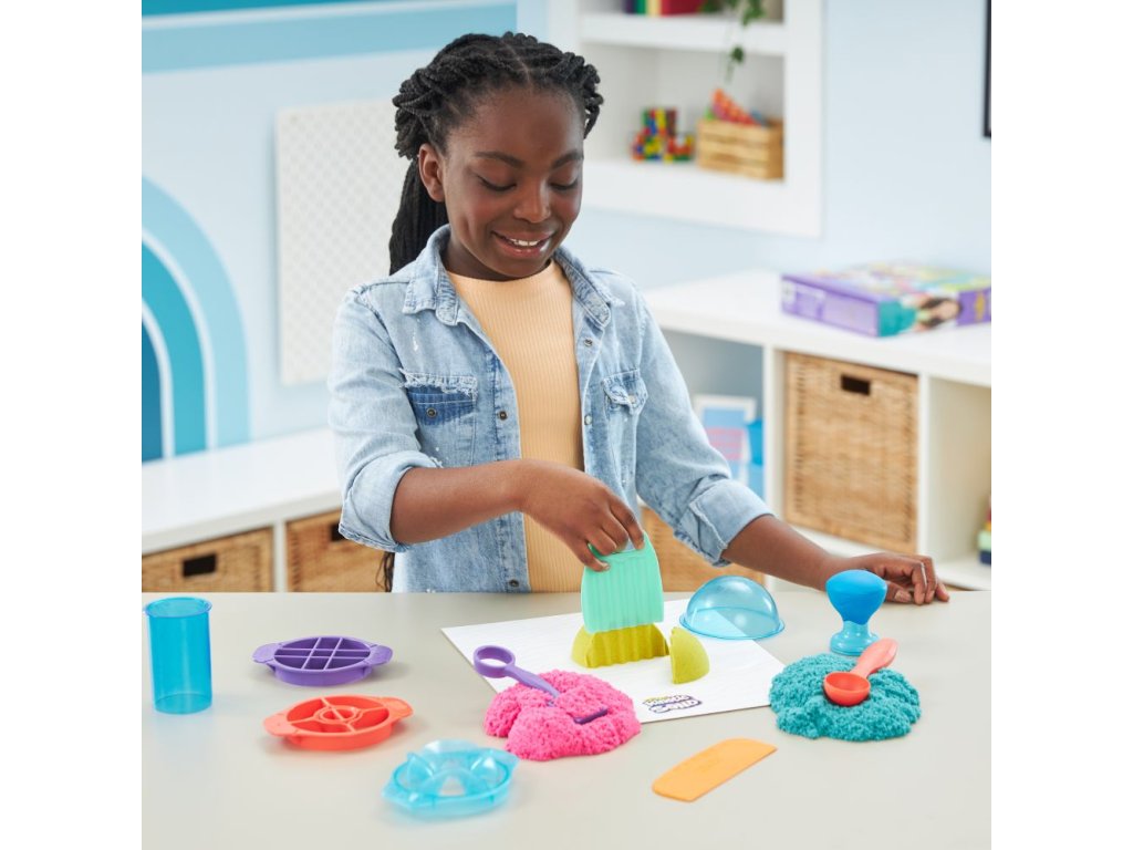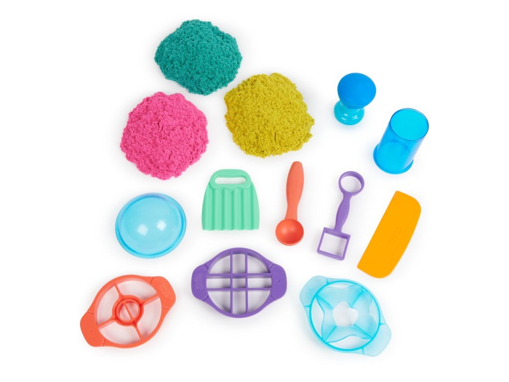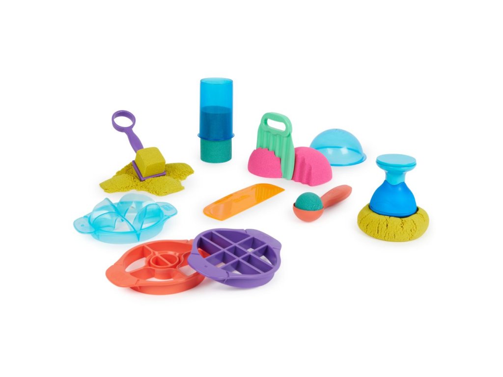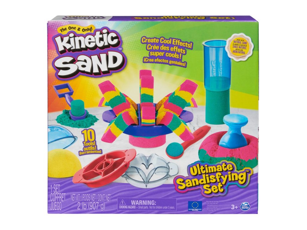 Rozvíjajte fantáziu a kreativitu so súpravou Ultimate Sandisfying Set! Táto súprava kinetického piesku obsahuje 900 g ružového, žltého a modrozeleného piesku a 10 formičiek a nástrojov, ktoré ponúkajú nekonečné možnosti hry s pieskom. Deti môžu piesok miešať, vrstviť a tvarovať podľa vlastnej fantázie. Tri exkluzívne nástroje na rezanie sú kľúčom k odomknutiu sveta fascinujúcich pieskových efektov! Magický kinetický piesok nikdy nevyschne, je vyrobený z prírodného piesku, takže je ideálny na hodiny hmatovej hry, ktorá podporuje jemnú motoriku a kreativitu. Po skončení hry je upratovanie hračka, pretože kinetický piesok One and Only Kinetic Sand drží pokope a nezanecháva za sebou žiadny neporiadok. Keď príde čas na upratovanie, jednoducho ulož piesok a nástroje do opakovane použiteľného vrecka, aby si ho ľahko upratal! Vytváraj znova a znova a nechaj, aby ti kinetický piesok pretekal cez ruky – je to také príjemné, že ho nebudeš chcieť odložiť! Táto súprava na hranie je nielen skvelou alternatívou k umeleckej modelovacej hmote, ale je aj skvelým doplnkom k tvojmu pracovnému stolíku, detským aktivitám a hračkám montessori! Perfektné štýlové hračky pre dievčatá a chlapcov, ktoré podporujú samostatnosť a fantáziu. Ak si chceš užiť viac zábavy s kinetickým pieskom, doplň svoju súpravu Kinetic Sand playset o vrecká s farebným pieskom Kinetic Sand bulk bags (predávajú sa samostatne)!Dodatočné parametre