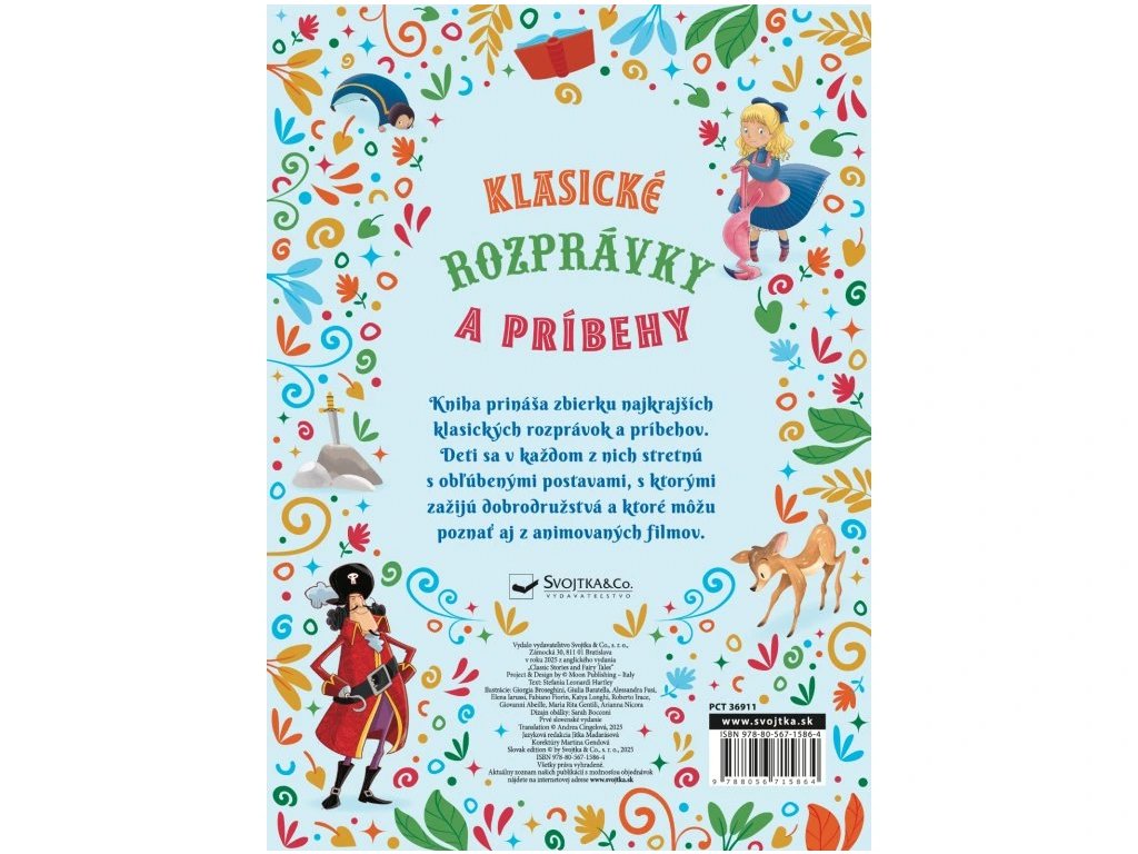 Klasické rozprávky a príbehyZbierka rozprávok a príbehovObjavte kúzelný svet nadčasových príbehov, ktoré okúzlili generácie detí po celom svete. V tejto bohato ilustrovanej zbierke klasických rozprávok, známych tiež z animovaných filmových spracovaní, sa stretnete s neohrozeným Petrom Panom, divokým Mauglim či veselým Pinocchiom.Deti sa stretnú s obľúbenými postavami, s ktorými zažijú dobrodružstvá a ktoré môžu poznať aj z animovaných filmov.Nechýbajú ani odvážne dievčenské hrdinky ako Snehulienka, Alenka alebo Dorotka z kúzelnej zeme Oz. Kniha prináša nielen známe príbehy, ale aj krásne ilustrácie, ktoré oživujú obľúbené postavy, ktoré deti poznajú aj z milovaných filmových rozprávok. Je ideálna na spoločné čítanie pred spaním, ale aj na prvé samostatné čítanie malých školáčikov - a ako taká je táto zbierka pokladom každej detskej knižničky.Dodatočné parametre