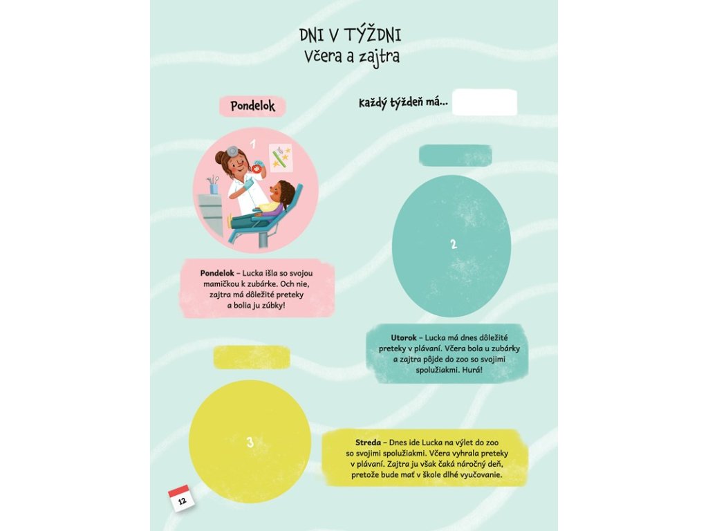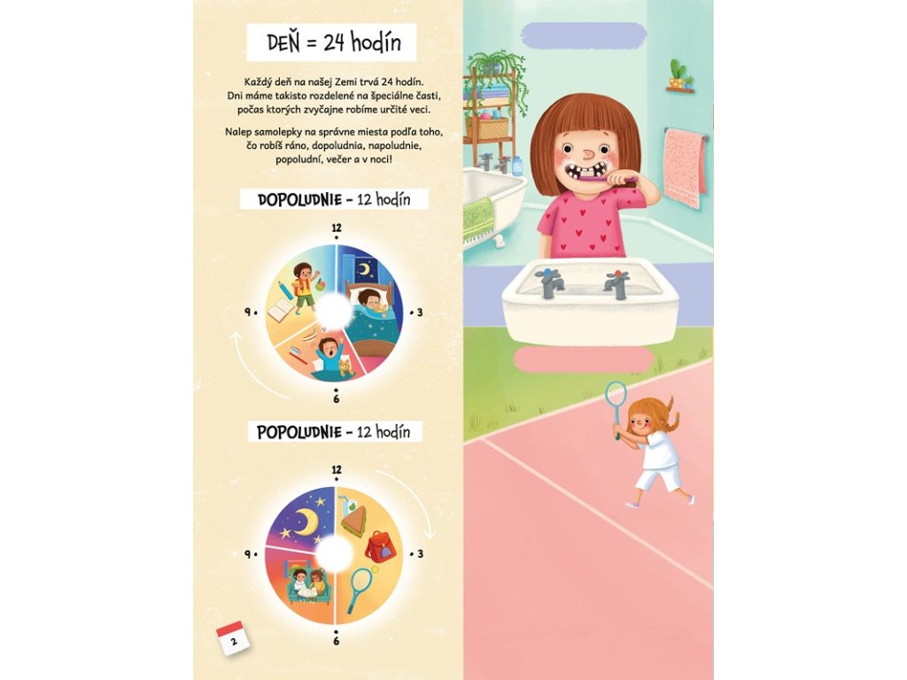 Kniha so samolepkami - Všetko o čase Objavte skvelú interaktívnu knižku s vyše 420 samolepkami, ktorá kombinuje čítanie so zábavou Vďaka samolepkám môžu deti vytvárať rôzne scenérie a pritom sa dozvedieť veľa zaujímavostí o čase.Práca so samolepkami pomáha rozvíjať kreativitu, predstavivosť a jemnú motoriku Čo stránka, to nové možnosti na spoznávanie a tvorenie. Zamestná deti na niekoľko hodín a učenie rozhodne nebude nuda!Dodatočné parametre