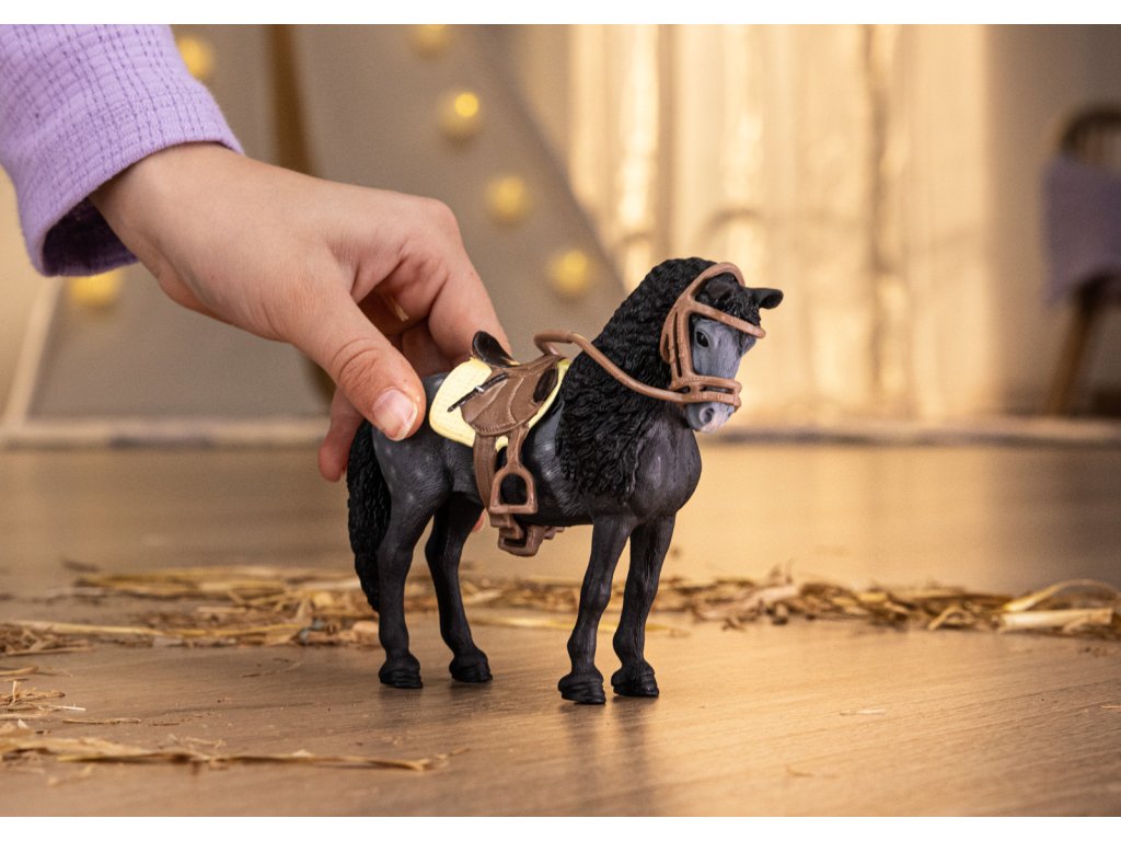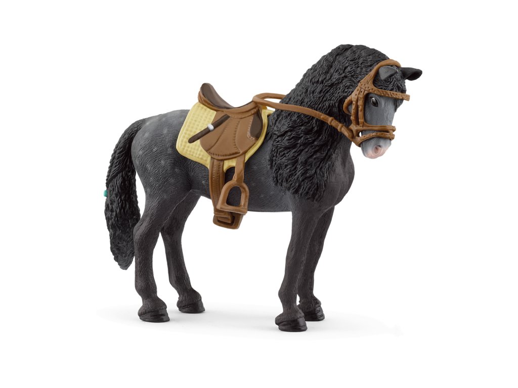 Kobyla Pura Raza Espanola má už na sebe deku, sedlo a uzdu, ale na výstavu dnes nepôjde. V takom prípade by bola jej hustá hriva určite spletená do zložitého účesu. Namiesto toho je pripravená na drezúrny výcvik. Už sa na to teší a kopyty sa opiera o zem svojími štíhlymi, ale silnými nohami. Je veľmi učenlivá a rada sa necháva viesť svojím pánom. Kobyla Pura Raza Espanola je skutočná kráskavica. Má sýto čiernu srsť, s ktorou kontrastuje len niekoľko svetlých škvrn na zadných nohách. Jej hriva je obzvlášť bujná a padá jej v hustých kučerách cez silný krk. Je silná a zároveň elegantná a uhladená. Sedlo a uzda sú odnímateľné. Obsah: 1× kobyla Pura Raza Espanola, 1× sedlo, 1× uzda s otážami. Tento výrobok Schleich® patrí do tematického sveta HORSE CLUB a je vhodný pre deti vo veku od 5 do 12 rokov. Rozmery figurky: 12,5 x 3,6 x 10,9 cm.Dodatočné parametre