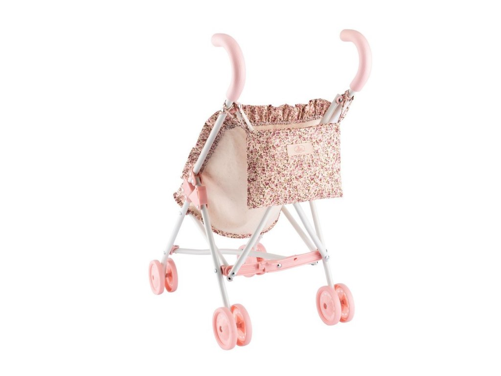 Pevné a stabilné kovové prvky kočíka sú natreté bielou farbou, čím dodávajú efekt estetickej krásy. Očarujúce svetloružové kolesá a rukoväte pokryté mäkkou penou zaisťujú pohodlie pri jazde.