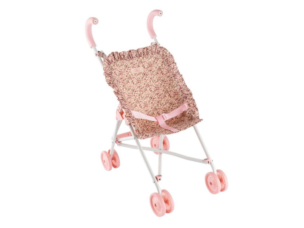 Každé dievčatko s radosťou zoberie na prechádzku svoje obľúbené španielske bábiky v originálnom kočíku Asi 3712000, ktorý zaujme jemným kvetinovým vzorom na béžovej bavlnenej látke. Dvojité volániky dodávajú celku eleganciu a šarm a pásy zabraňujú vypadnutiu hračky z vozidla.