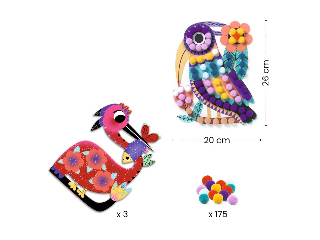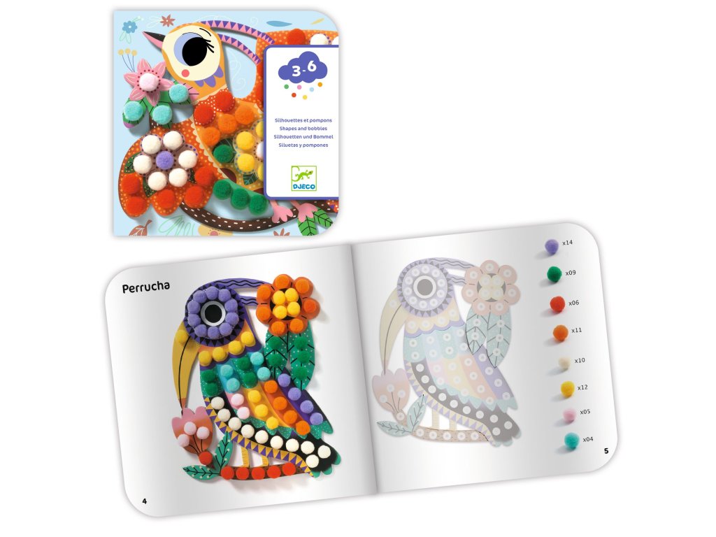 Koláž s brmbolcami: Siluetové vtáčikyKreatívna výtvarná sada pre deti plná farieb a textúrVýtvarná sada Koláž s brmbolcami – siluetové vtáčiky umožňuje deťom vytvárať originálne obrázky pomocou mäkkých, farebných brmbolcov. Deti dopĺňajú siluety vtáčikov a pracujú s rôznymi textúrami, farbami a tvarmi. Tvorenie je jednoduché, zábavné a zároveň veľmi uspokojujúce, vďaka čomu si ho obľúbia aj menšie deti.Prečo si vybrať túto kreatívnu sadu od Djecotvorenie pomocou mäkkých a farebných brmbolcovjednoduchý princíp vhodný aj pre mladšie detirozvoj kreativity hravou a nenáročnou formoupráca s farbami, tvarmi a textúramivýsledné obrázky vhodné ako dekoráciaideálna ako kreatívny darčekvhodné pre deti od 3 rokovČo sada rozvíja u detíjemnú motoriku a koordináciu rúkcit pre farby a kompozíciukreativitu a fantáziuschopnosť sústrediť satrpezlivosť a samostatnosťObsah baleniailustrované siluetové obrázky vtáčikov s lepivými plôškami175 farebných brmbolcovprehľadný návodDodatočné parametre
