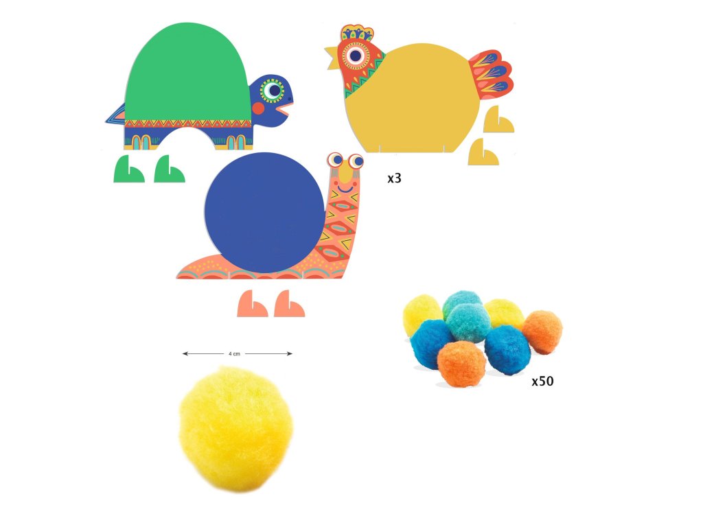Koláže s veľkými brmbolcami: mäkké zvieratkáVýtvarná sada s veľkými brmbolcami na tvorbu zvieracích kolážíKoláže s veľkými brmbolcami: mäkké zvieratká je kreatívna výtvarná sada pre malé deti, ktorá ponúka zábavnú a jednoduchú tvorbu koláží s veľkými brmbolcami. Deti lepia mäkké, farebné brmbolce na papierové siluety zvierat, čím vznikajú hravé a textúrou bohaté obrázky.Prečo si vybrať sadu od Djecovhodná pre deti od 18 mesiacovjednoduché nalepovanie veľkých brmbolcovpodporuje kreativitu a fantáziuvhodné pre domáce aj školské tvoreniebez potreby farieb, štetcov či lepidlaObsah balenia3 farebné papierové siluety zvierat s lepivými plôškami50 veľkých mäkkých brmbolcov v rôznych farbách a veľkostiach6 nožičiek z pevnej lepenkyjednoduchý návodDodatočné parametre