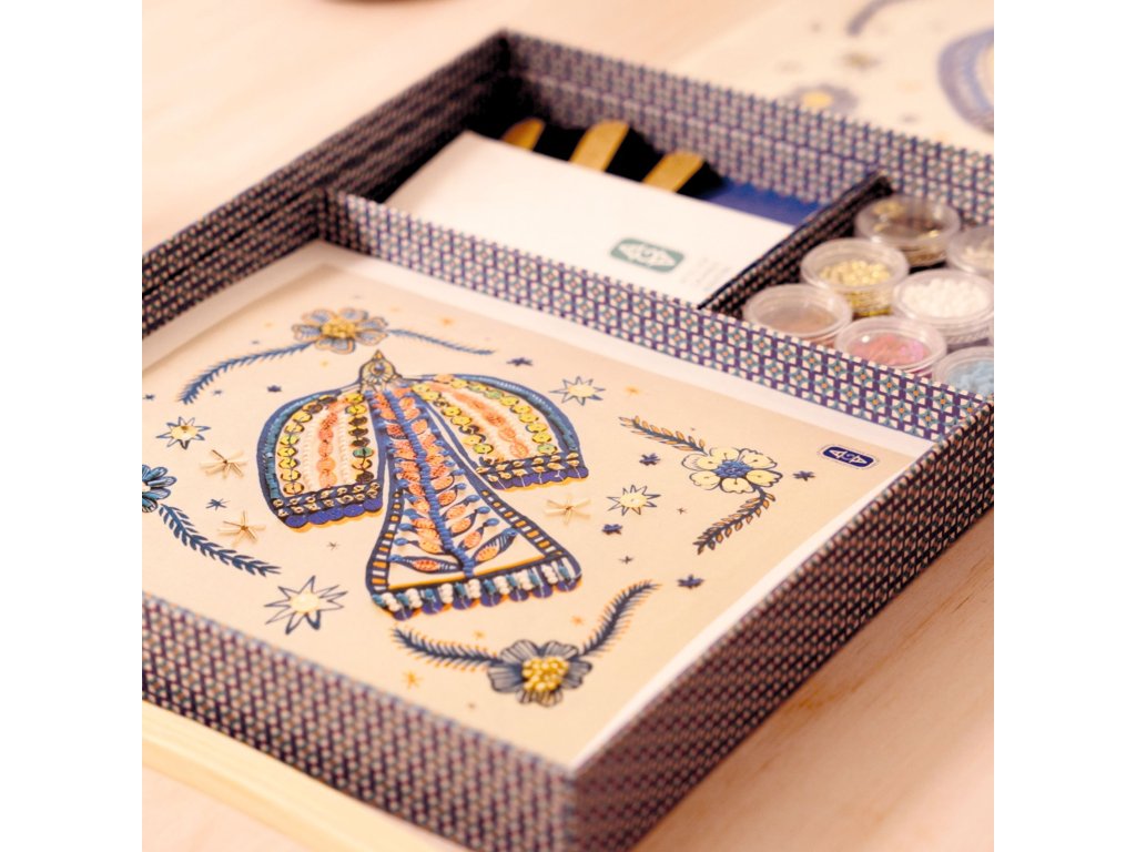 Korálkovanie na plátne Vták Ateliér 59 Vytvor korálkami elegantného vtáka – vznikne trblietavý obraz ako z haute coutureKorálkovanie na plátne – Vták (Ateliér 59) je precízna kreatívna sada inšpirovaná svetom haute couture. Učí techniku jemného „perlage“ – teda prišívanie korálok a flitrov na napnuté plátno podľa predtlačeného motívu. Každý detail vzniká pomaly, ihlou a niťou, a práve v tom je čaro tohto pokojného tvorenia.Plátno si upevníš do dreveného vyšívacieho kruhu a postupuješ krok za krokom podľa vzoru. Korálky a flitre dodajú motívu plastickú štruktúru a jemný lesk – výsledok pôsobí luxusne a hotové dielo si môžeš hrdo vystaviť. Pomôže ti aj videonávod, vďaka ktorému zvládne techniku aj trpezlivý začiatočník.Pre koho je vhodná: odporúčaný vek: od 15 rokov (pre tínedžerov a dospelých)Hlavné benefity zoznámi ťa s technikou korálkovej výšivky (korálky + flitre) predtlačený motív vedie prácu a uľahčuje presnosť výsledkom je trblietavý, textúrovaný obraz s „ručným“ charakterom relaxačné tvorenie – ideálne na sústredenie a vypnutie hlavy videotutoriál pomáha zvládnuť správne postupy krok za krokom krásna krabica poslúži aj na odkladanie rozrobenej práce a pomôcokDôležité informácie približná dĺžka tvorenia: cca 13 hodín rozmer rámu na vystavenie: 26 × 20 × 1 cm rozmer balenia: 31,5 × 24,5 × 3,4 cmObsah balenia 1 farebne potlačené plátno s motívom vtáka 1 drevený vyšívací kruh na napnutie plátna 9 krabičiek korálok a flitrov 2 ihly + navliekač nite 2 cievky modrej nite podložka na korálky (aby sa nerozkotúľali) malé vyšívacie nožničky predloha + návod + karta s prístupom k videonávoduDodatočné parametre