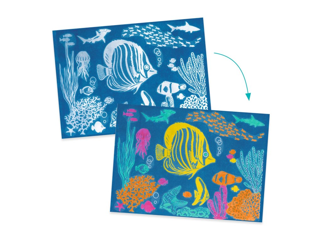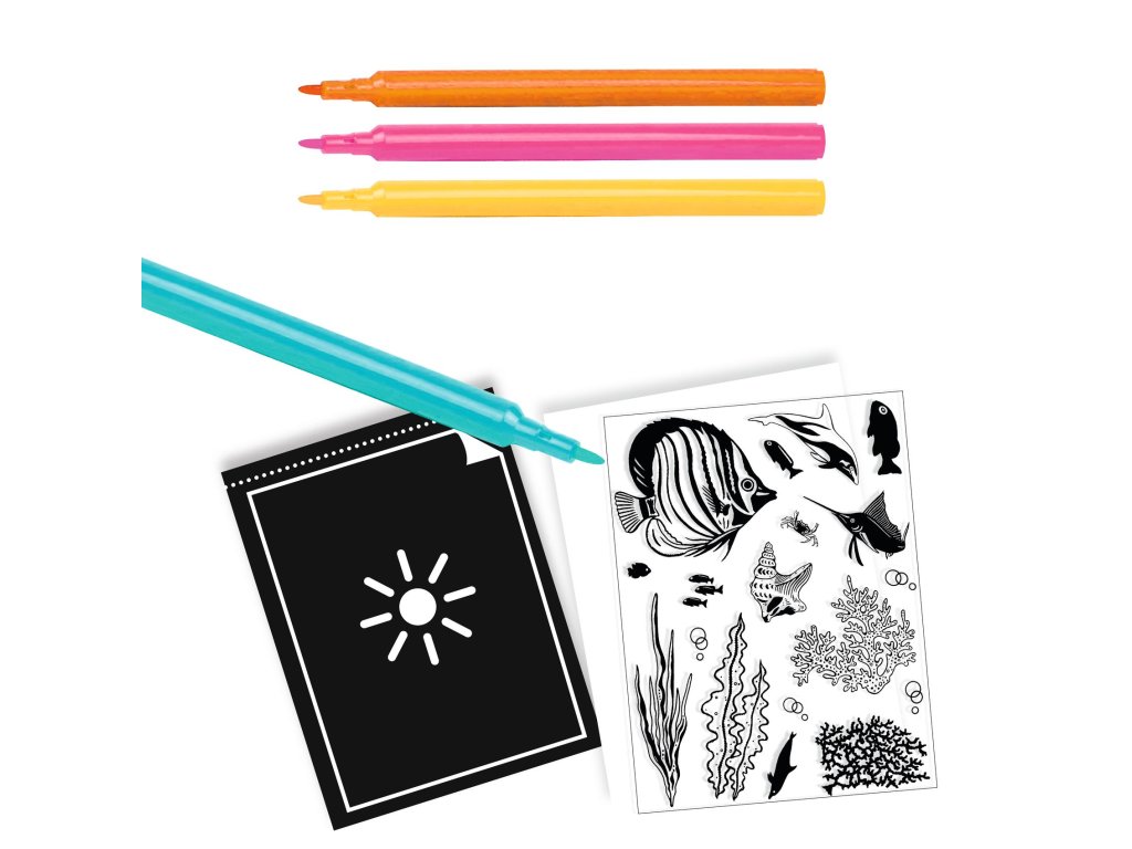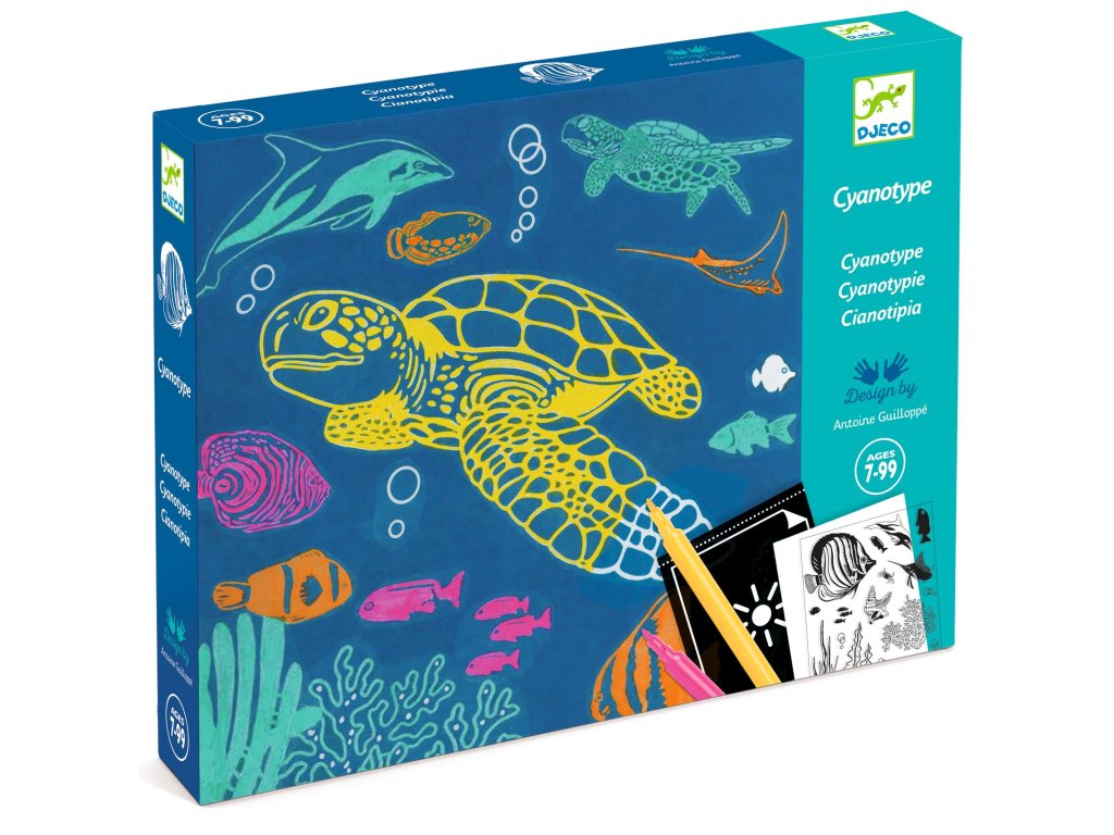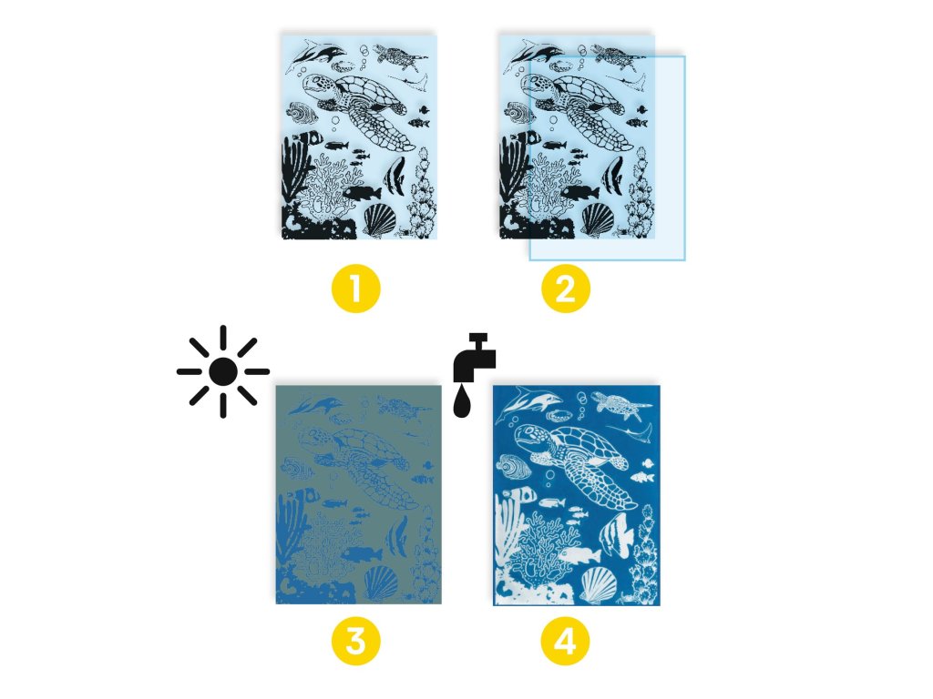 Kreatívna kyanotypová sada Podmorský svet Vytvor modré „fotogramy“ pomocou svetla a vodyKyanotypová sada – Podmorský svet je kreatívna aktivita, v ktorej deti vytvárajú obrázky pomocou svetlocitlivého papiera. Stačí položiť šablóny s podmorskými motívmi na papier, nechať ich pôsobiť na svetle a potom obrázok opláchnuť vodou. Objaví sa typická modrobiela kyanotypia – efekt ako z „modrej fotografie“.Deti si môžu skúšať rôzne kompozície, vrstviť motívy a vytvárať vlastné podmorské scény. Aktivita je prehľadná, robí sa krok za krokom a výsledkom sú originálne obrázky, ktoré sa dajú vystaviť alebo darovať.Pre koho je vhodná: odporúčaný vek: od 7 rokovHlavné benefity jednoduchý experiment s kyanotypiou (svetlo + voda) rozvíja kreativitu a cit pre kompozíciu podporuje sústredenie a trpezlivosť výsledkom sú originálne modré obrázkyObsah balenia svetlocitlivé papiere na kyanotypiu šablóny s motívmi podmorského sveta plexisklo 4 farebené fixkyDodatočné parametre