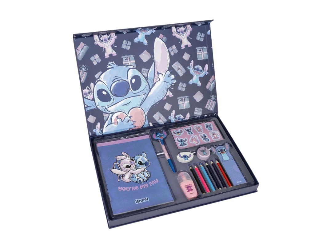 Kreatívna sada písacích potrieb Stitch Perfektný darček pre malých školákov Vitajte vo svete farieb a nekonečnej zábavy! S kreatívnou sadou Stitch, ktorá je ako stvorená pre malých umelcov, sa fantázii medze nekladú. Deti si môžu nielen kresliť a písať, ale aj vlastnoručne vyfarbiť skice s motívom ich obľúbenej Stitch!Tento originálny set je ideálny na doma, do školy alebo ako kreatívny darček, ktorý rozžiari každú detskú tvár.Darujte svet plný farieb Motív Stitch – obľúbené rozprávkové postavičky detíCeruzky a pero na kreslenie a písanieZápisník StitchNálepkyZáložkaĎalšie kreatívne doplnkyPodporuje kreativitu a jemnú motorikuZabaví aj počas daždivých dní či dlhých ciestDodatočné parametre