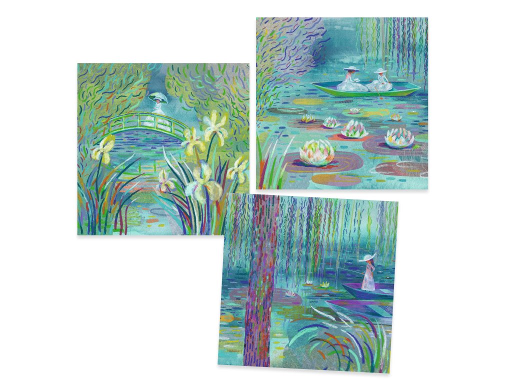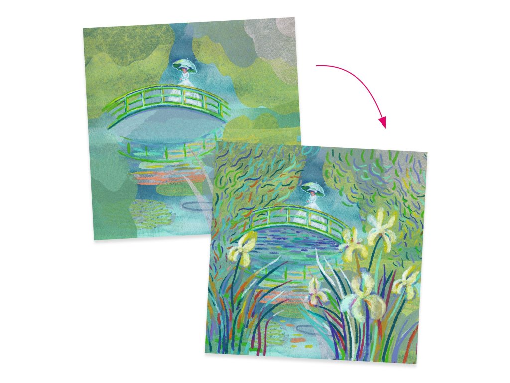 Kreslenie podľa Clauda Moneta Impresionizmus na dosah ruky: dotvor triptych Lekná jemnými ťahmi olejových pastelovKreslenie podľa Clauda Moneta je výtvarná súprava zo série inšpirovanej slávnymi umelcami, ktorá ťa zavedie do sveta impresionizmu.V balení nájdeš 3 obrázky na dotvorenie, ktoré po dokončení vytvoria pôsobivý triptych v štýle Monetových leknín.Kreslí sa pomocou 12 olejových pastelov (tukové ceruzky/pastely), ktoré umožňujú vrstvenie farieb a jemné prechody ako na skutočnom plátne.Rýchly prehľad odporúčaný vek: 8 – 99 rokov technika: olejové pastely (tukové ceruzky) počet obrázkov: 3 (spolu tvoria triptych) štýl: impresionizmus – práca s farebnými „dotykmi“ bonus: brožúra s informáciami o umelcovi a postupom krok za krokomPrečo si ju zamiluješ učí pracovať s farbou – vrstvenie, prechody, štruktúra výsledok pôsobí ako umelecká dekorácia – 3 diely vedľa seba vyzerajú skvelo podporuje sústredenie a trpezlivosť pri detailnej práci vďaka návodu je tvorenie zvládnuteľné aj bez „talentu“ ideálne ako kreatívny darček pre deti aj dospelýchAko sa s tým tvorí Vyber si jeden z obrázkov a priprav si olejové pastely. Postupuj podľa návodu alebo experimentuj s vlastnými farebnými ťahmi. Vrstvi farby jemnými „dotykmi“, aby vznikol impresionistický efekt. Dokonči všetky 3 časti a poskladaj ich vedľa seba ako triptych.Obsah balenia 3× obrázok na dotvorenie (triptych) 12× olejový pastel 1× brožúra s informáciami a návodom krok za krokomTechnické parametre odporúčaný vek: 8 – 99 počet dielov: 3 obrázky + 12 pastelov + brožúra rozmery balenia: približne 31 × 23 × 2 cmDodatočné parametre