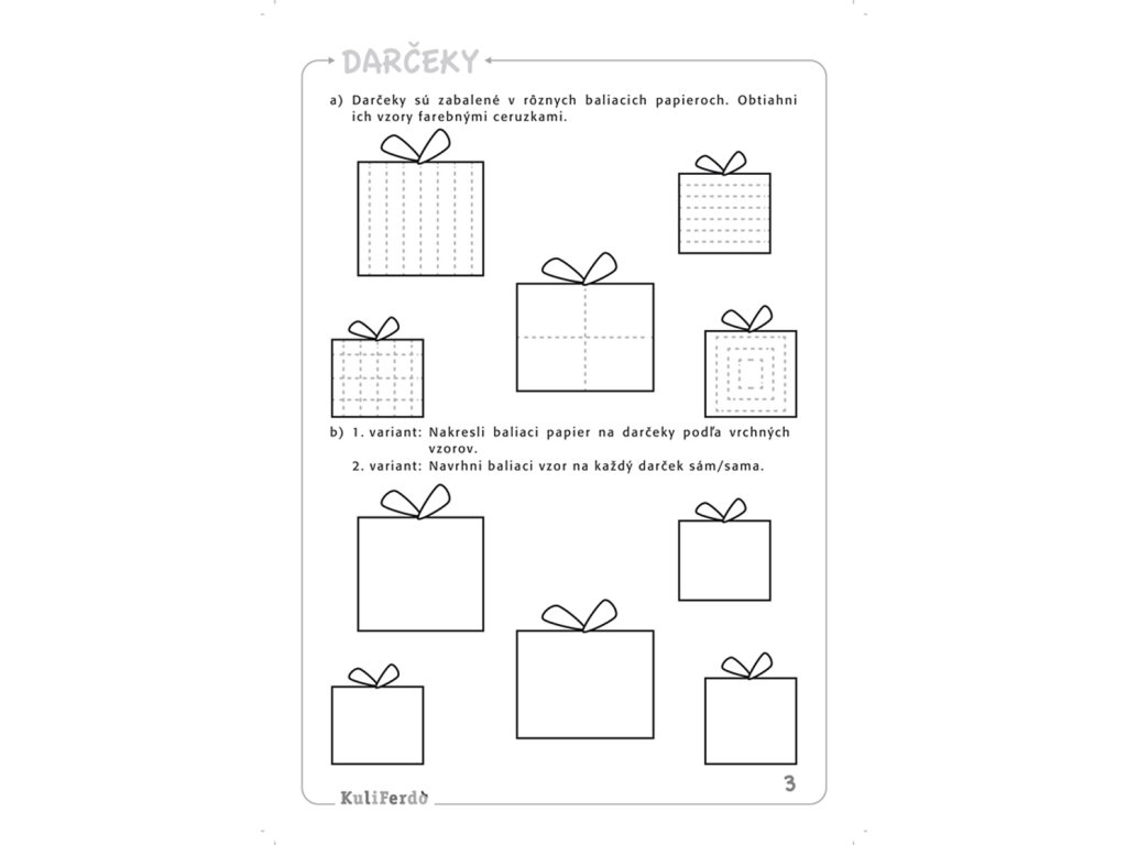 Kuliferdo - Grafomotorika-Pracovný zošit na rozvoj školskej zrelosti pre deti v MŠ Dostupné aj v kolekcii za skvelú cenu. Tretí zošit zo súboru ôsmich pracovných zošitov zameraný na rozvoj školskej zrelosti u detí v predprimárnom vzdelávaní. Súbor je praktickou učebnou pomôckou na rozvoj v oblastiach zrakového a sluchového vnímania, grafomotoriky, myslenia, orientácie a pozornosti. Jednoduché aktivity pomáhajú rozvíjať schopnosti dieťaťa a pripraviť ho na vstup do základnej školy. Súbor je výnimočný pre: - odbornosť, praktickosť a jedinečnosť,- maximálnu využiteľnosť v rámci vyučovacieho procesu (prispievajú k celkovému rozvoju osobnosti dieťaťa, uľahčujú prácu s deťmi so ŠVVP),- využitie v školskom aj domácom prostredí. Autor: Věra GošováRok vydania: 2014Počet strán: 21Typ väzby: mäkká/ paperbackDodatočné parametre
