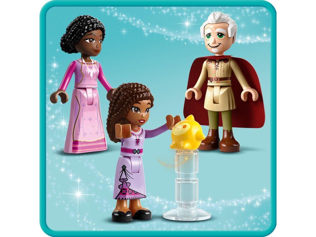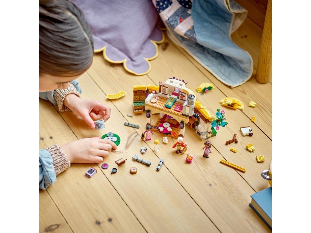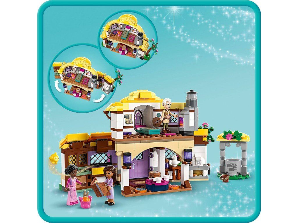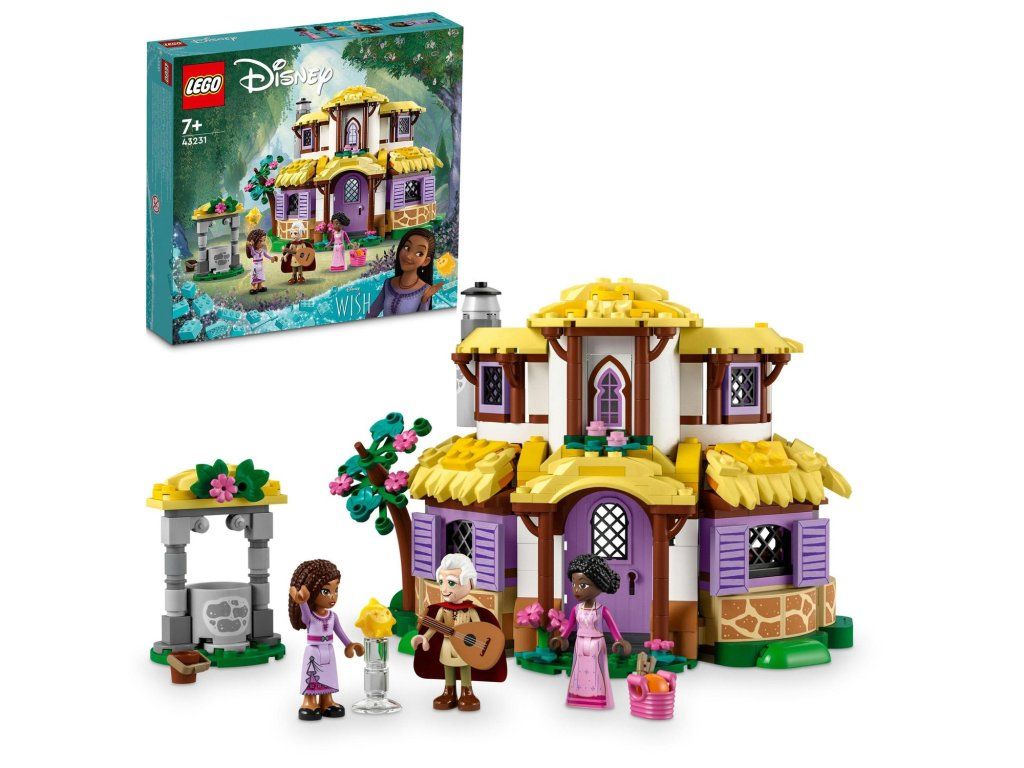 Očarte deti od 7 rokov Ashinou chatou z pripravovaného filmu Prianie od štúdia Walt Disney Animation Studios s touto stavebnicou LEGO® | Disney Ashina chata (43231). Vo vnútri nájdete dvojposchodovú budovu so sklopnými otváracími bočnými stenami, stôl s tortou s usmievavou tváričkou, skrinky so zápisníkom, lyžičkou a vidličkou a spálňa na poschodí s posteľou a krbom. Nechýba ani studňa prianí a množstvo ďalších herných doplnkov. Pridajte túto stavebnicu LEGO | Disney k ostatným stavebniciam zo série (43223 a 43224, predávajú sa samostatne) a rozšírte tak svoje možnosti hrania. Pri stavaní dostanú deti jednoduchú a intuitívnu pomoc pomocou aplikácie LEGO Builder, v ktorej si môžu približovať a otáčať svoje modely v 3D rozhraní, ukladať si stavebnice a sledovať svoj pokrok. Jedinečná chata a postavy Stavebnica obsahuje 4 postavy – Ashu, jej mamu Sakinu, starého otca Sabina a Hviezdu– a naštartuje zábavnú hru na postavy počas skúmania chatky. Doprajte deťom s láskou ku kúzlam a prianiam tento zostaviteľný model, ktorý si môžu ľahko na hru von a ktorý bude zábavným darčekomDodatočné parametre