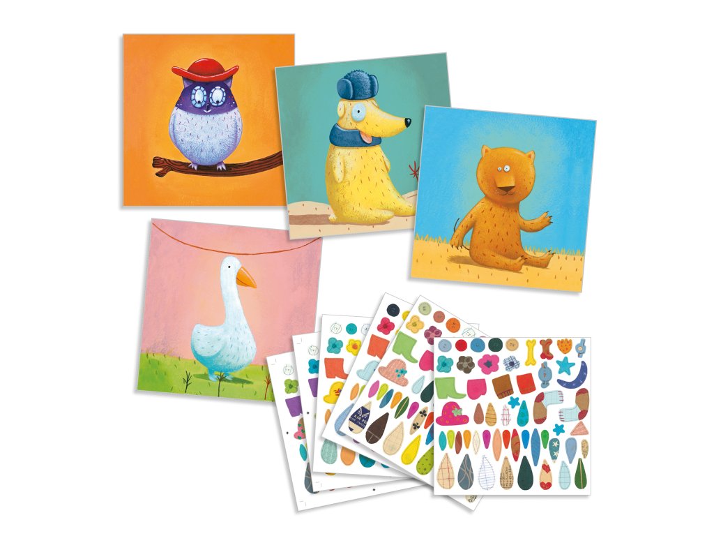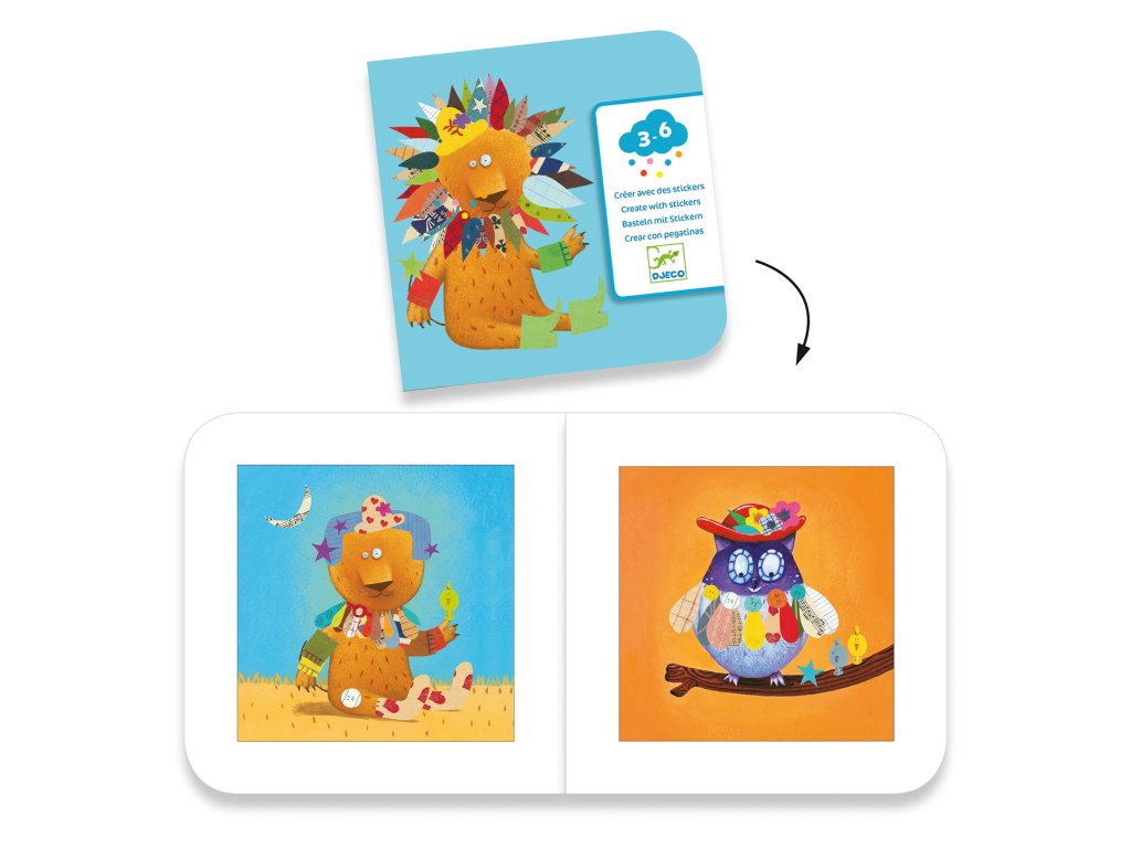 Lepenie obrázkov Zvieratká Tvorenie s nálepkami. S touto sadou si môžete vytvoriť vlastné zvieratko. Tvorenie s papierom bude deti rozhodne baviť.Vytvorte si jedinečné zvieratká z rôznych druhov nálepiek. Nálepky dotvoria obrázky na predlohách - zábavná činnosť s prekásnymi výsledkami. Podľa vlastnej fantázie si môžete vytvoriť prekrásne obrazy nalepovaním pierok, kvetov, lístkov a rozličných doplnkov na zvieratká. Tvorením dieťa zdokonaľuje jemnú motoriku, rozvíja fantáziu a trpezlivosť.Balenie obsahuje: 4 x 4 predlohy, 6 hárkov s nálepkami (= stovky nálepiek) a návod.Dodatočné parametre