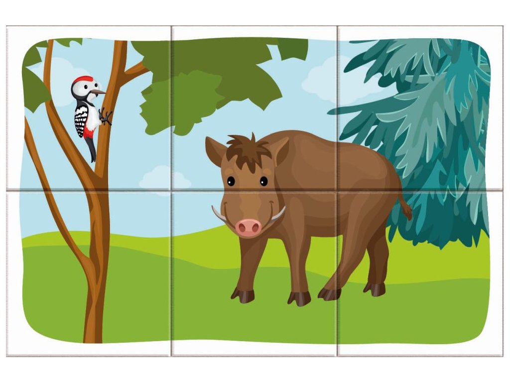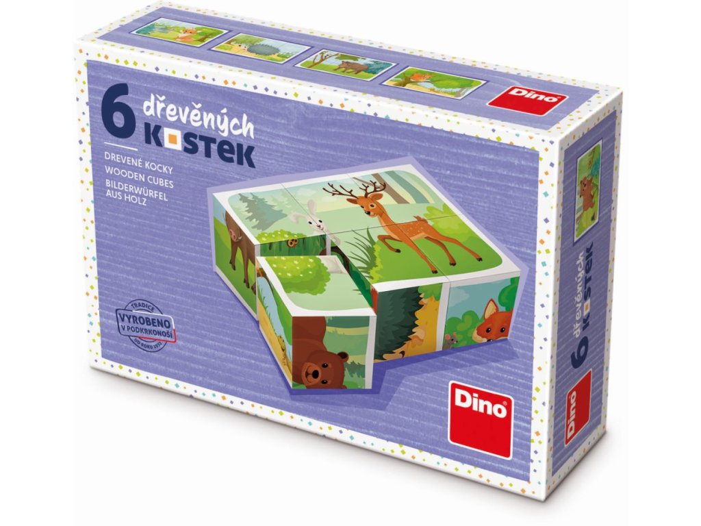 Detské drevené kocky, z ktorých je možné zostaviť 6 rôznych obrázkov. Balenie obsahuje 6 kociek. Vek: 3+Dodatočné parametre