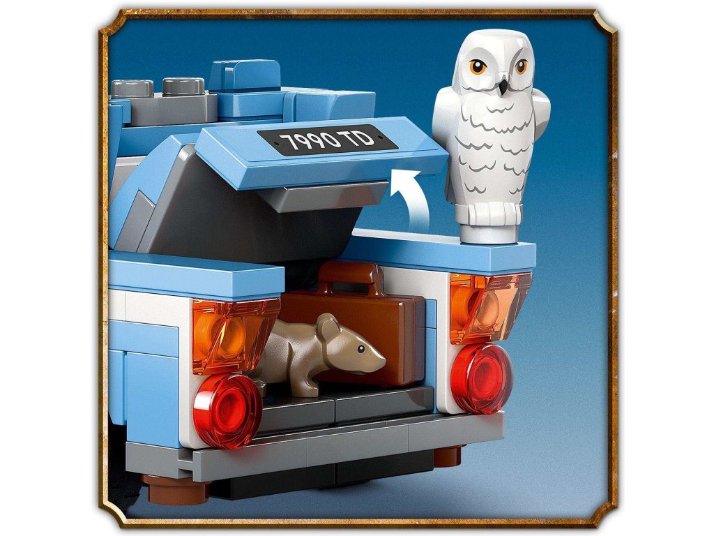 Pripomeňte si napínavú cestu Harryho Pottera a Rona Weasleyho do Rokfortu v lietajúcom aute Ford Anglia™ (76424) s touto fantastickou hračkou pre deti od 7 rokov. Dobrodružné hračkárske auto z kociek LEGO® má otváracie dvere a odnímateľnú strechu, takže doň ľahko umiestnite minifigúrky Harryho Pottera a Rona Weasleyho a figúrku sovy Hedvigy. V kapote je miesto na kufor, Harryho a Ronove prútiky a Ronovho domáceho miláčika, potkana Prašivca. Táto kvalitná stavebnica pre deti bude tým najlepším darčekom k narodeninám, či len tak pre chlapcov a dievčatá, ktoré si môžu zinscenovať ikonickú scénu z filmu Harry Potter a Tajomná komnata™ a vymýšľať vlastné čarovné príbehy. Tento model dobrodružného vozidla možno skombinovať s ďalšími stavebnicami zo série LEGO Harry Potter (predávané samostatne), a inšpirovať predstavivosť mladých čarodejníkov, čarodejníc a muklov, ktorých čaká ešte viac herných možností.Dodatočné parametre