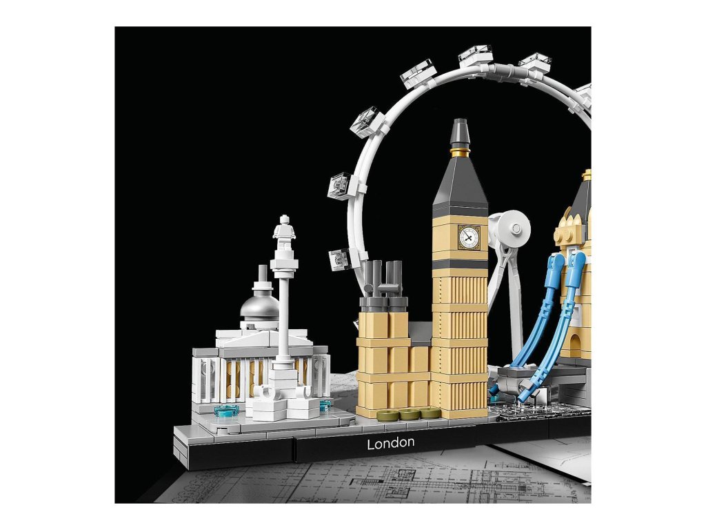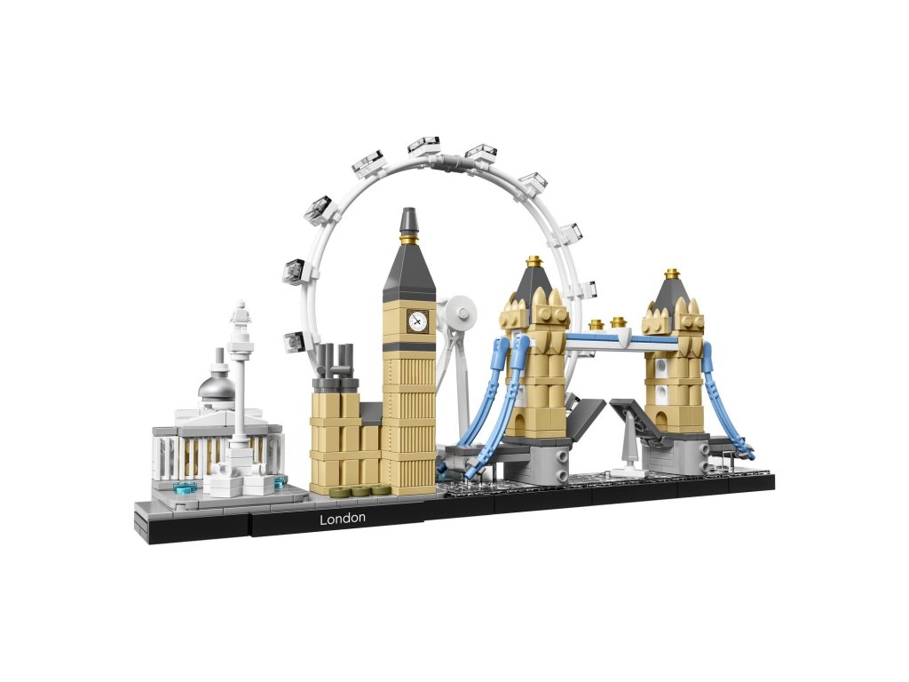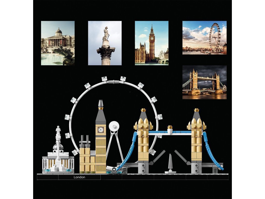 Osláv architektonickú rozmanitosť Londýna vďaka detailnému modelu mesta z LEGO® kociek. Panoramatické modely z edície LEGO Architecture Skyline Collection môžeš vystavovať doma aj v kancelárii a sú určené pre všetkých tých, ktorí sa zaujímajú o cestovanie, architektúru, históriu a dizajn. Každá stavebnica je navrhnutá v presnom pomere s predlohovou budovou a presne odzrkadľuje jej farby. Táto stavebnica obsahuje Národnú galériu, Nelsonov stĺp, London Eye, Big Ben (Elizabeth Tower) a Tower Bridge, ako aj dekoratívnu ceduľku „Londýn“.Dodatočné parametre