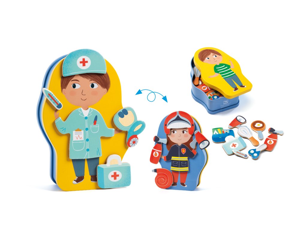 Magnetická hra PovolaniaObjavte svet povolaní zábavnou formouS magnetickou hrou Povolania z kolekcie InZeBox sa deti naučia spoznávať rôzne profesie hravou a interaktívnou formou. Pomocou drevených magnetiek Jobissimo môžu skladať postavičky pracovníkov v typických uniformách a rozvíjať kreativitu, predstavivosť a jemnú motoriku.Keď sa hra skončí, magnetky jednoducho uložte do praktickej dózy Tvarovaná kovová dóza slúži nielen ako úložný box, ale aj ako podložka na skladanie magnetiek. Dóza je obojstranne využiteľná, takže skladanie postáv je pohodlné a prehľadné.Prečo je táto hra skvelá pre deti: Rozvíja kreativitu, jemnú motoriku a logické myslenie Interaktívna hra spoznávania rôznych povolaní Praktické skladovanie magnetiek v kovovej dóze Dvojstranná podložka na pohodlné skladanie postavičiek Obsah balenia: 20 drevených magnetiek rôznych povolaní Kovová dóza s dvojstrannou podložkouDodatočné parametre