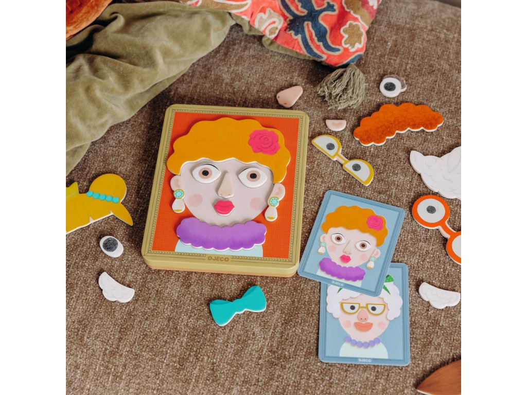 Magnetická skladačka Portréty Vytváraj tváre, kombinuj výrazy a vymýšľaj príbehyMagnetická skladačka Portréty je kreatívna magnetická hra, v ktorej deti pomocou magnetických dielikov skladajú rôzne tváre a portréty. Kombinovaním očí, úst, nosov, účesov a doplnkov môžu vytvoriť veselé, smiešne aj úplne bláznivé postavičky.Dieťa si vyberie magnetickú podložku a postupne na ňu prikladá jednotlivé magnety, mení ich polohu a skúša nové kombinácie. Hra nemá jedno správne riešenie – podporuje fantáziu, tvorivosť a vlastné nápady.Pre koho je vhodná: odporúčaný vek: od 3 rokov pre deti, ktoré rady kombinujú, skladajú a tvoria pre rozvoj fantázie a jemnej motoriky vhodná na samostatnú hru aj hru s rodičomČo sa dá s produktom robiť skladať rôzne tváre a portréty z magnetických dielikov meniť výrazy tvárí a vytvárať emócie kombinovať účesy, doplnky a črty tváre vymýšľať príbehy a mená postavičiek hrať sa opakovane – každý portrét je inýObsah balenia magnetická podložka magnetické dieliky tvárí a doplnkov ilustrované kartičky s predlohamiDodatočné parametre