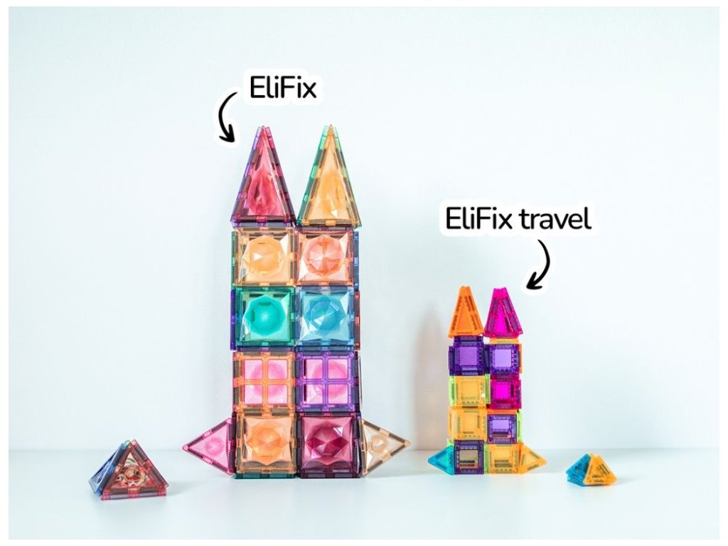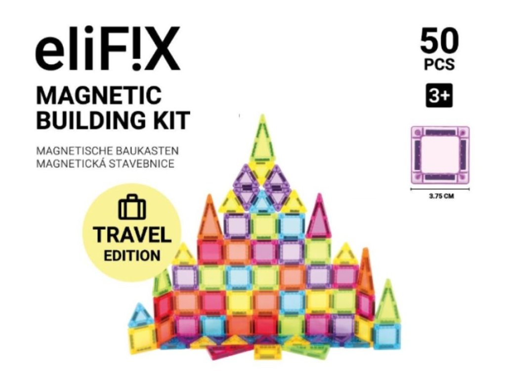 Skladačka s magnetmi v menšom prevedení Kreatívna magnetická stavebnica EliFix Travel ponúka okrem štvorcov aj dva druhy trojuholníkov v zmenšenej podobe. Veľkosť magnetických dielov je o 75% menšia ako u klasickej stavebnice EliFix a sada je teda vhodná aj na cesty. Sledujte, ako deti vytvárajú úžasné stavby a veľdiela a pripojte sa k nim. Magnetická stavebnica podporuje kreativitu, trpezlivosť, logické myslenie, priestorovú predstavivosť, jemnú motoriku, STEM schopnosti (veda, technológie, inžinierstvo, matematika), a spája zábavu s učením. Magnety dobre držia stavbu pohromade, ale sú silné tak akurát, aby s nimi mohli manipulovať detské ručičky. Magnetická stavebnica môže doslova rásť s vašim dieťaťom. Jednotlivé stavebnice EliFix je možné vzájomne prepájať a vytvárať tak ešte väčšie a prepracovanejšie stavby. Kreatívna skladačka je vyrobená z netoxického ABS plastu, je teda úplne bezpečná na hranie aj učenie vašich detí. Stavebnice Elifix sú kompatibilné s ostatnými magnetickými stavebnicami z našej ponuky. Technické parametre: Obsah balenia: 50 ks (32x štvorec, 12x rovnostranný trojuholník, 6x rovnoramenný trojuholník). Rozmer balenia: 12 x 4,5 x 12 cm. Rozmery dielikov: štvorec malý 3,75 x 3,75 cm. Materiál: ABS, magnet. Odporúčaný vek: od 3 rokov, 3+. Značka eliNeli prináša do detského sveta moderný dizajn v spojení s moderným európskym štýlom inšpirovaným nemeckou kvalitou a dizajnom. Prioritou pri výrobe sú prírodné materiály, prírodné drevo, čím podporuje udržateľnosť a bezpečnosť hračiek. Produkty eliNeli sú navrhnuté s ohľadom na reálne potreby detí a rešpektujú ich rozvojové fáze podľa montessori metodiky. S eliNeli sa deti učia, tvoria a rastú v bezpečnom a podnetnom prostredí, ktoré nielen spĺňa, ale prekonáva ich očakávania. Viac o produktoch eliNeli nájdete na: https://www.elineli.eu/sk/. Pozrite sa na porovnanie našej stavebnice EliFix Travel so stavebnicou inej značky:
