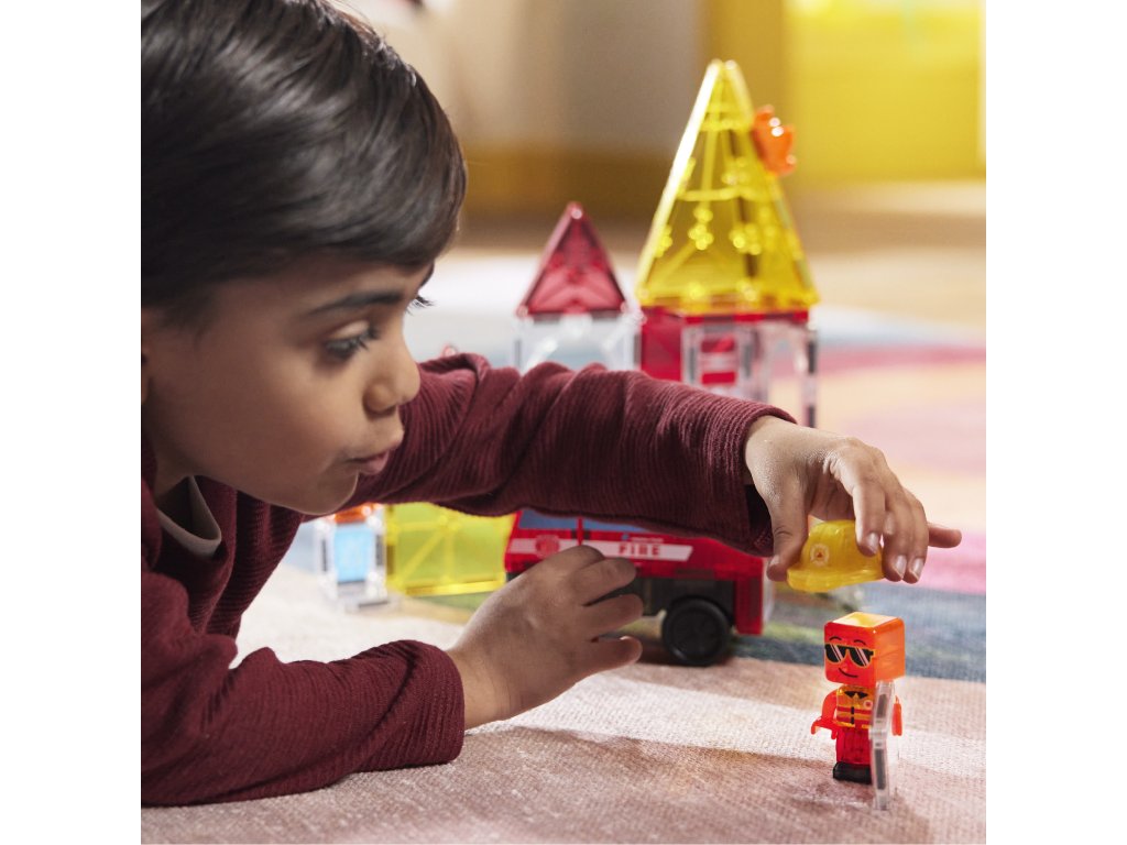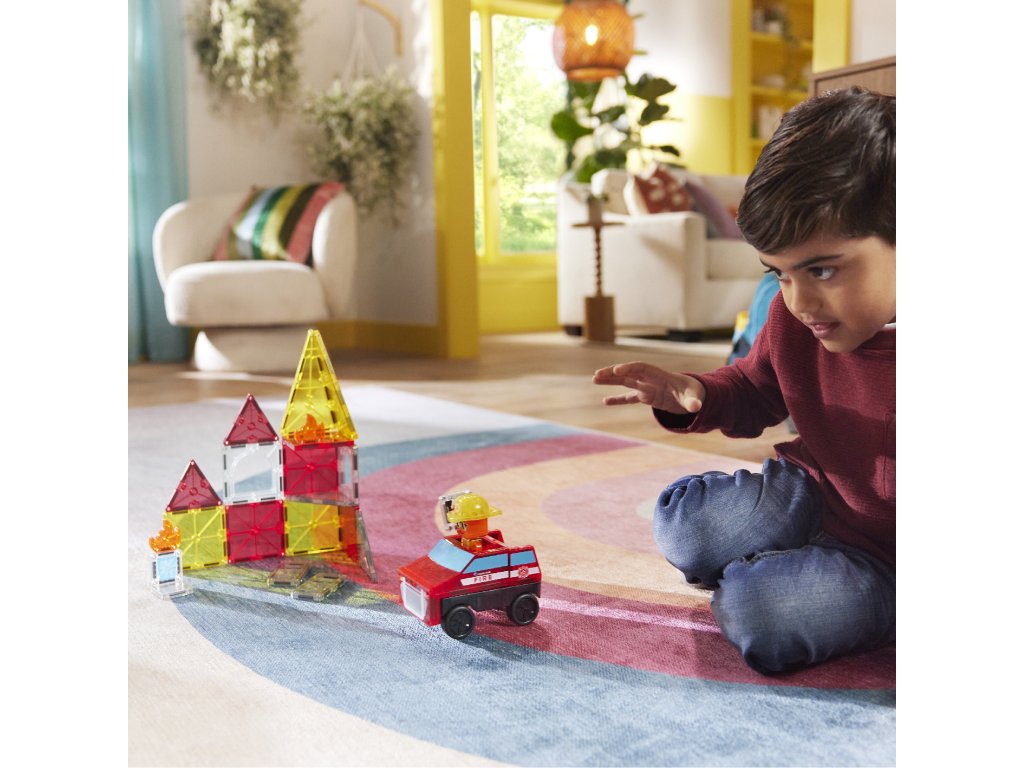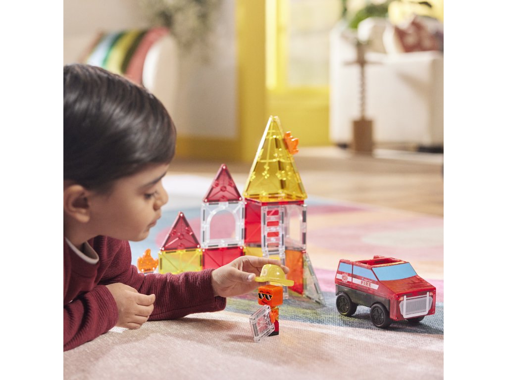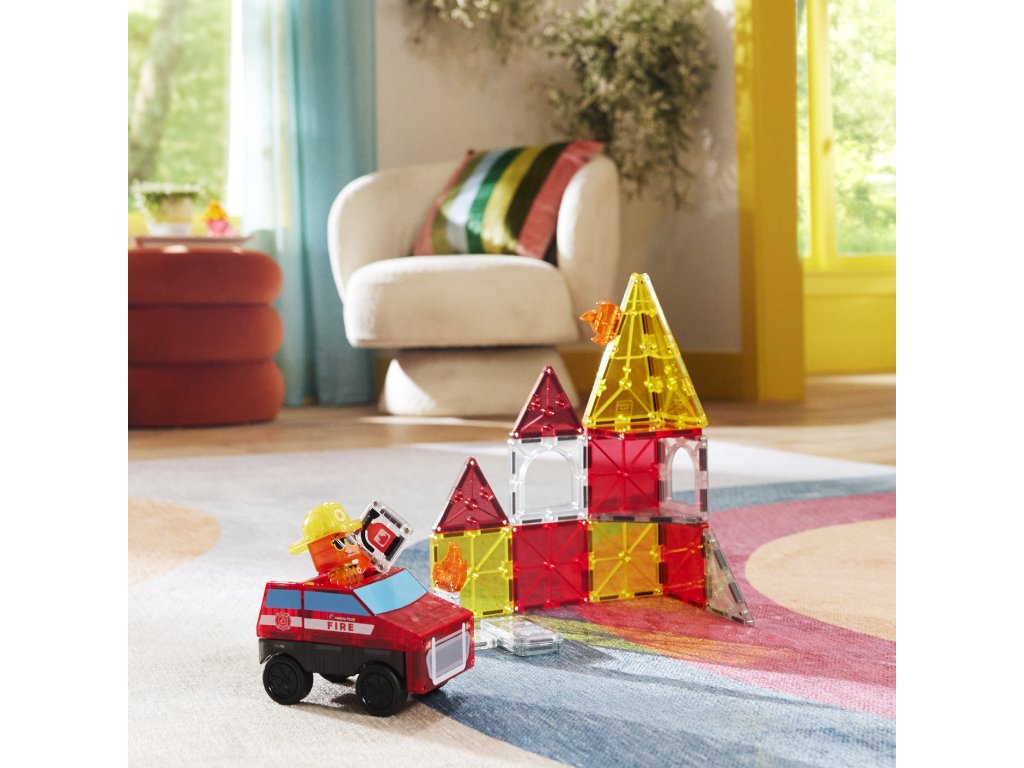 Magnetická stavebnica Fire Rescue 27 dielov Poplach! Požiar v meste – povolaj hasičov a zachráň situáciu! Zábava, akcia a fantázia v jednom – to je MAGNA-TILES® Fire Rescue! Táto 27-dielna magnetická stavebnica premení deti na skutočných hrdinov, ktorí sa neboja čeliť výzvam. Čo robí túto stavebnicu výnimočnou? Pullback podvozok pre rýchly zásah – postav si hasičské auto a vyraz do akcie.Ohnivé dlaždice a lezecké rebríky – vytvárajú realistické a napínavé príbehy.Figúrka hasiča typu Mix & Match – prispôsobiteľná od helmy po topánky, pripravená na každú misiu, ktorú si dieťa vymyslí.Plne kompatibilná s ostatnými sadami MAGNA-TILES® – Viac dielov = viac možností.Prečo si ju deti aj rodičia zamilujú? Podporuje kreativitu a samostatnosť – Stavanie bez návodu? Áno, prosím!Rozvíja jemnú motoriku, koordináciu ruka-oko a logiku – Učenie hrou nebolo nikdy zábavnejšie.Perfektný darček pre malých dobrodruhov – Odporúčané pre deti od 3 rokov.Bezpečné a odolné prevedenie – Sú vyrobené tak, aby vydržali nespočetné hodiny hrania a neobsahujú BPA, ftaláty ani latex.Navrhnuté pre zmysluplnú hru – Bez potreby asistencie dospelých, len čistá radosť.Dodatočné parametre