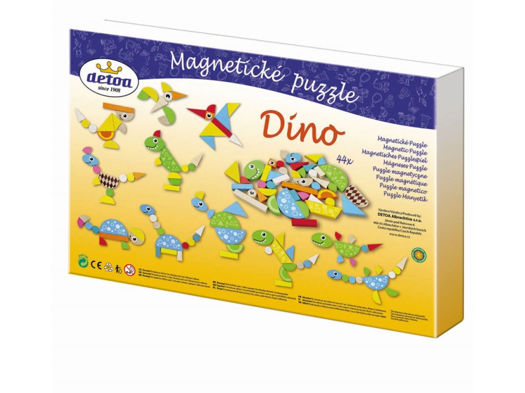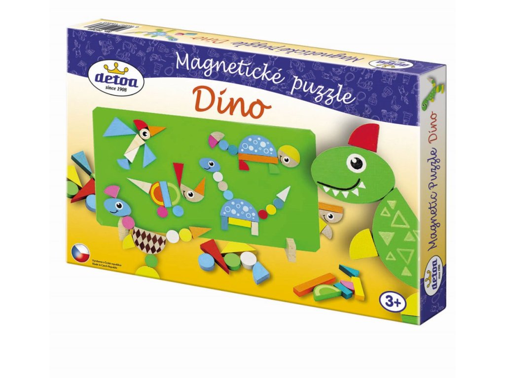 Hra pre rozvíjanie predstavivosti a tvorivosti s motívom dinosaurov. Deti si môžu pomocou magnetických dielikov vytvárať akékoľvek obrázky podľa vlastnej fantázie. Obsah balenia: Magnetická tabuľka 310x165 mm, 2x drevený stojan a 41 drevených dielikov.Dodatočné parametre