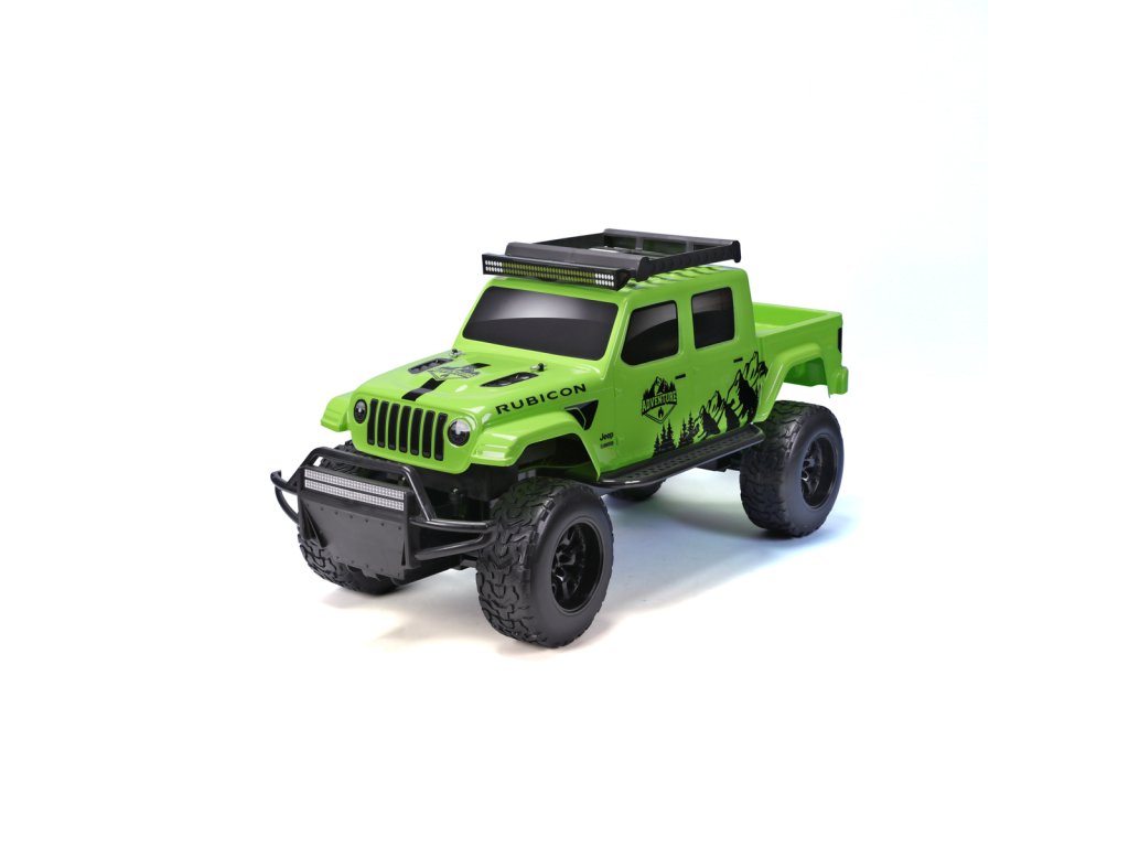 28´´ Jeep Gladiator, zelená farba. Veľký model terénneho pick-up vozidla na diaľkové ovládanie od značky Maisto. Frekvencia 2,4 GHz umožňuje súbežnú jazdu až so 4 RC modelmi. Auto využíva dobíjateľnú batériu pomocou USB kábla (obidve sú súčasťou balenia). Diaľkový ovládač má dosah až 35 metrov. Ovládač používa 2x AA batérie (súčasťou balenia). Balenie: 83,15x33,65x33,65 cm. Vek 8+Dodatočné parametre