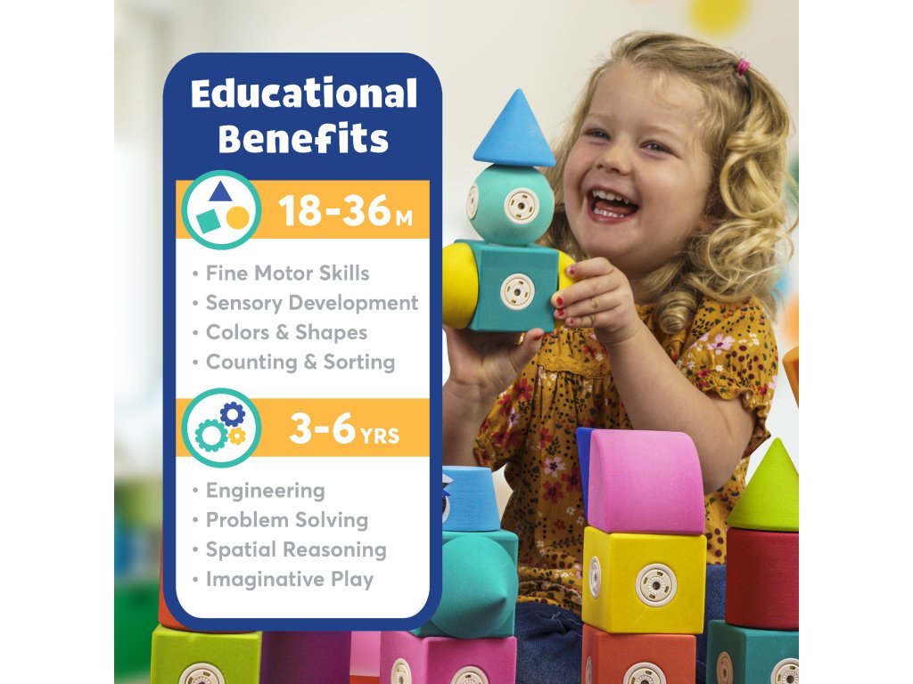Mäkká magnetická stavebnica Robot 10 ksMagnetická stavebnica pre najmenšie detiPenová stavebnica Blockaroo Robot 10 ks je skvelou prvou stavebnicou pre batoľatá od 18 mesiacov. Jednotlivé dieliky sú vyrobené z mäkkého, penového, netoxického materiálu s ultra bezpečným magnetickým systémom. Magnety nevypadávajú a neodpudzujú sa. Všetky dieliky stavebnice sú kompatibilné a deti si z nich môžu stavať nielen robota, ale aj svoje vlastné stavby. Blockaroo nevadí ani voda a je tak skvelou hračkou do vane.Vzdelávacie stavebnice na doma aj do vaneMagnetická stavebnica Blockaroo Robot bola vyvinutá učiteľmi a je tak jedinečnou STEM hračkou pre najmenšie deti. Batoľatá si s ňou rozvíja jemnú motoriku, zmyslové vnímanie, koordináciu ruka-oko aj kreativitu. Učia sa farby tvary, počítať a triediť, zlepšujú si svoje priestorové vnímanie. Blockaroo je skvelá ako originálny darček pre deti. V prípade znečistenia ju ľahko umyjete v hornej zásuvke v umývačke riadu.Dodatočné parametre