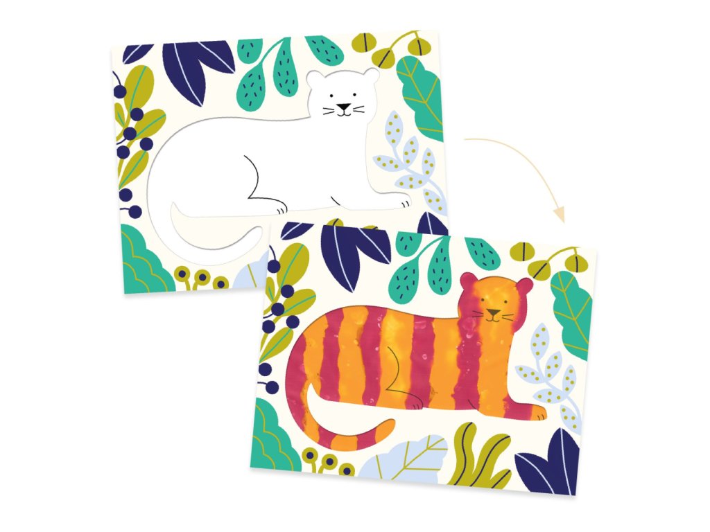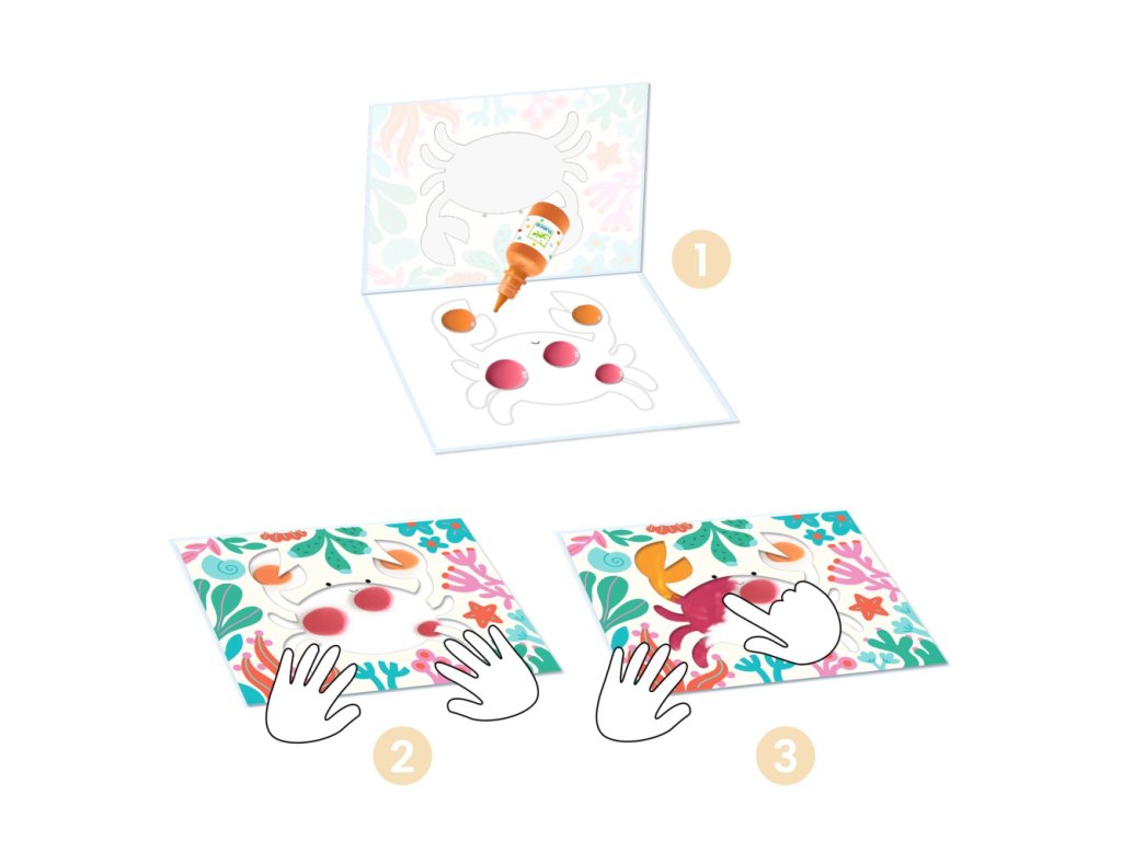 Maľovanie čisto a jednoducho Oceán Opakovane použiteľná začiatočnícka kreatívna sada pre batoľatá Obsahuje 4 ilustrované dvojhárky vo fólii. Otvorte dvojhárok, na motív zvieratka vytlačte farbu a zatvorte. Dieťa roztlačí farbu cez výrez na vrchnej strane a vďaka fólii si nezašpiní prsty. Farbu stačí z obrázka zmyť. Dieťa sa touto aktivitou oboznamuje s farbami a ich miešaním. Vyrobené z papiera a lepenky s ekologickým certifikátom FSC®.Obsah: 4 ilustrované dvojhárky v priehľadnom plastovom obale, 4 plastové fľaštičky gvašových farieb (červená, oranžová, modrá a zelená), 1 obrázkový návodRozmery: 27 x 20 cm.Dodatočné parametre